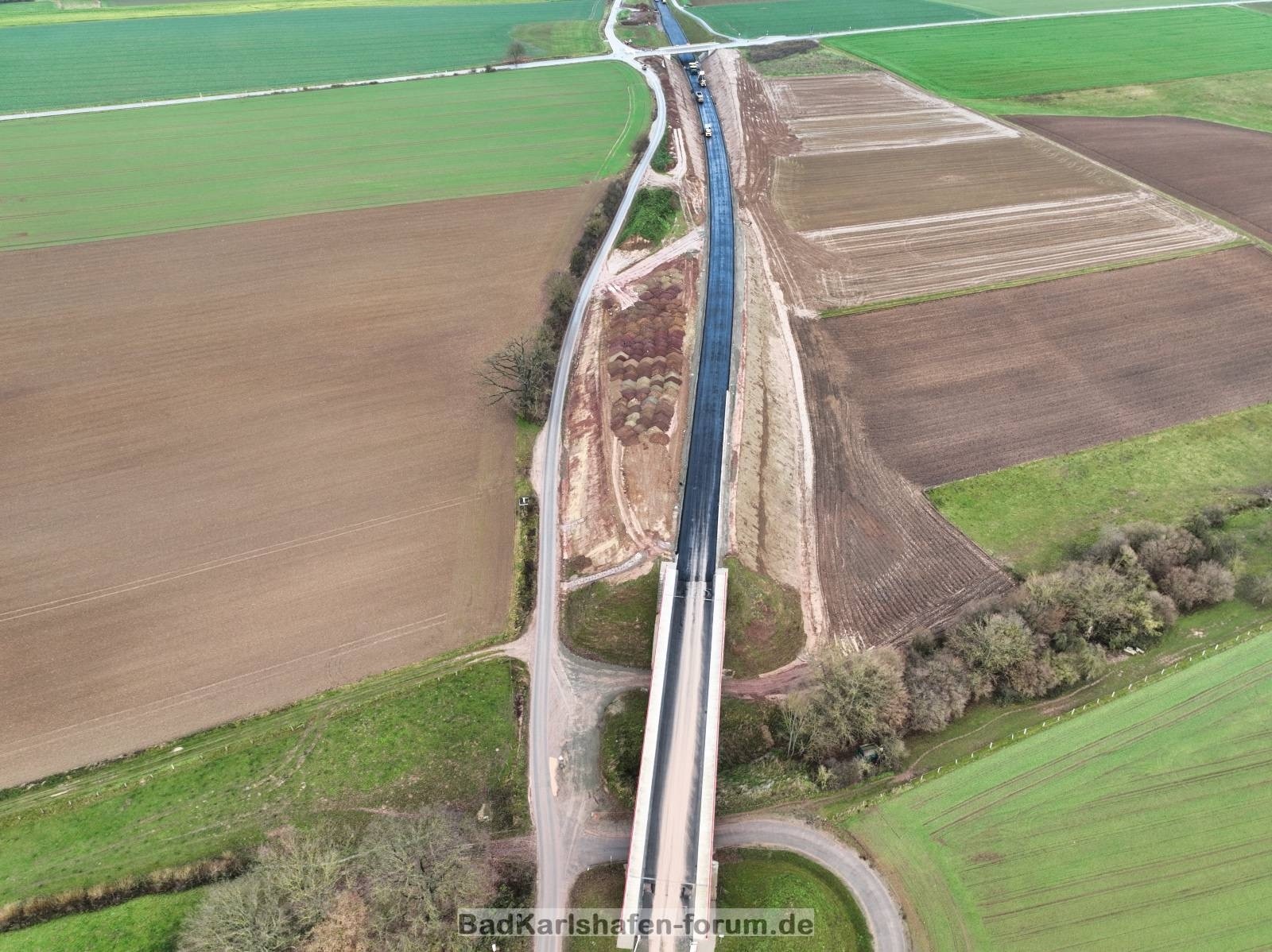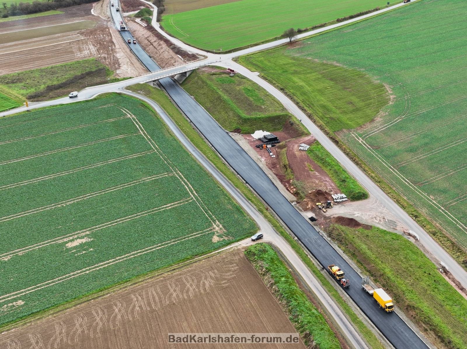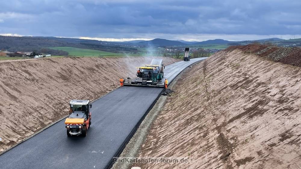 Roger34385 16 Geschrieben 7. Dezember 2021 Geschrieben 7. Dezember 2021 Es findet bereits die Asphaltierung des B83 Streckenabschnitts von BW 4 (UF Hainbach) bis BW 2 (UF Höllebach) statt. Das Bild zeigt den Abschnitt BW 3 (Überführung K72, oben) und BW 2 (Unterführung Wirtschaftsweg und Höllebach, unten). 1 Zitieren