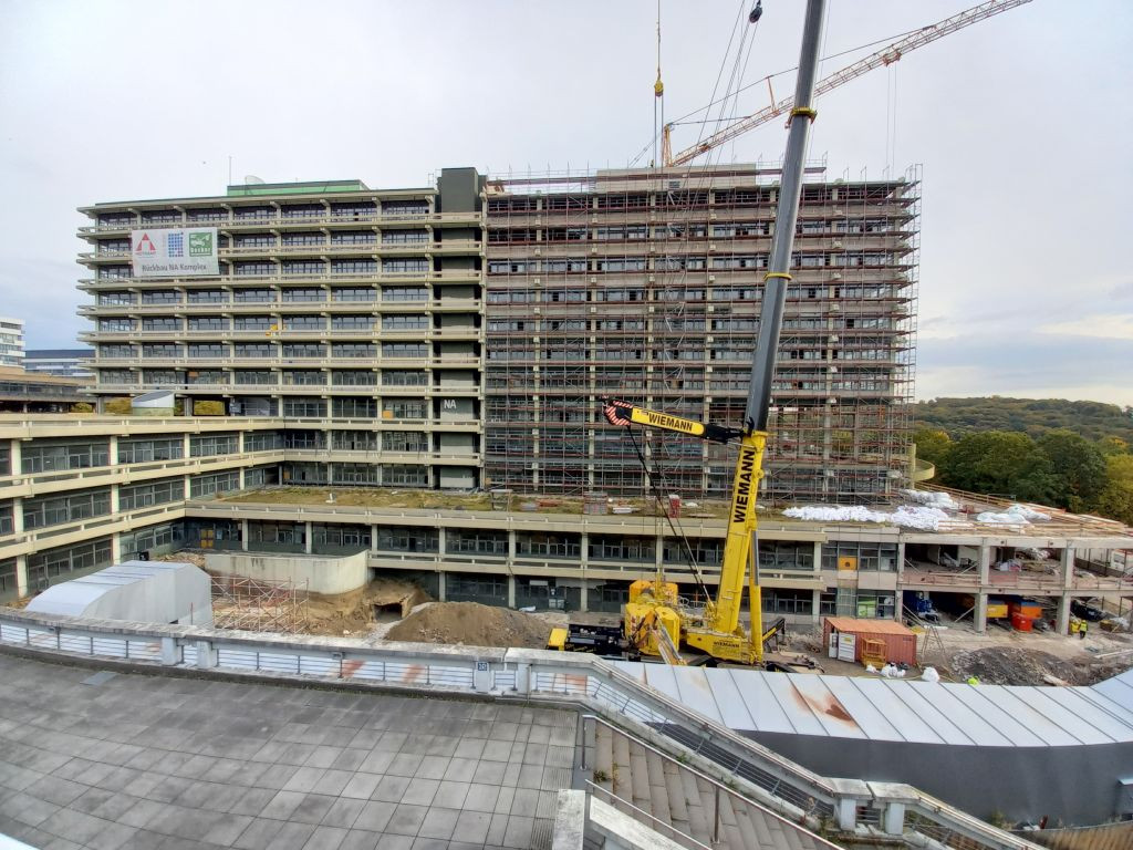 A.Briss 190 Geschrieben 13. Oktober 2022 Autor Geschrieben 13. Oktober 2022 So, es sind neue Entwicklungen zu beobachten. Die Asphaltarbeiten an der Parkhausumfahrung sind weit fortgeschritten, und die Fertigstellung naht. Auch das Betonkunstwerk "Evolution" im Innenhof 1 ist abgebaut. Außerdem zeigt NA jetzt an verschiedenen Stellen weiteren Substanzverlust: Zitieren