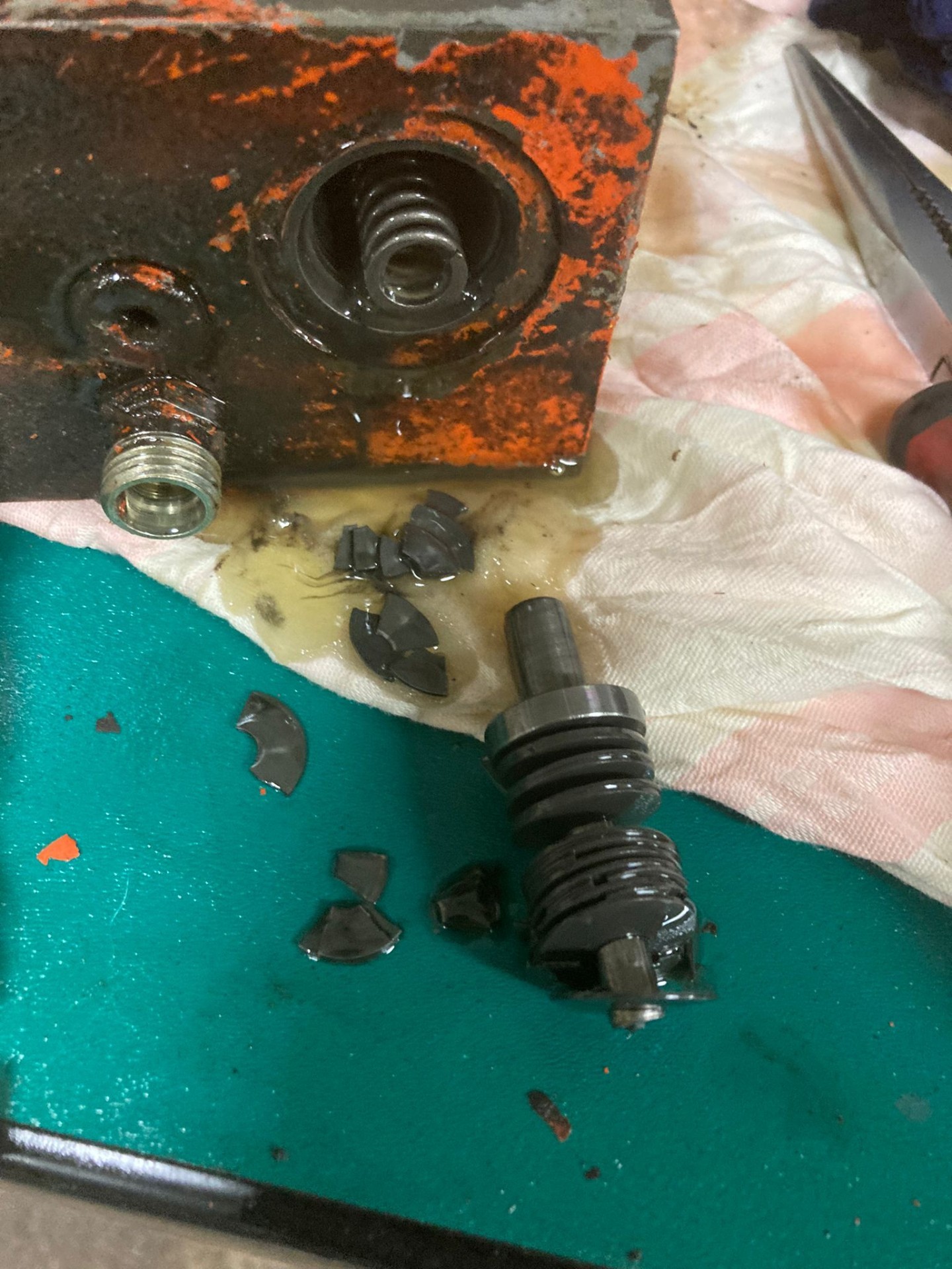 Sandstrahltechnik Kopp 0 Geschrieben 9. Februar 2022 Geschrieben 9. Februar 2022 (bearbeitet) Hallo Folgendes zu meinem Problem Mein Schaeff HML 40 Hatte das Problem das er entweder ganz normal fährt Vor- und Rückwärts oder es geht garnichts und bzw bewegt er sich ganz kurz . Folgende Maßnhamen wurden schon unternommen: Drehdurchführung wurde neu Abgedichtet /Bei Btstd. +10 000 empfehlenswert -> Selbst durchgeführt Hydromotor VMV5 Sauer Zerlegt und neu Abgedichtet keinen Verschleiß festgestellt -> Selbst durchgeführt Elektrische Ansteuerung für Magnetspulen Vor und Zurück wurde geprüft Auf der SPV 22 hab ich die Überdruckventile für Vor und Rückwärts geprüft. Können eig nichts haben weil beide Ventile gleichzeitig kaputt ??? eher nicht . Schlussendlich wurde der Hydrostat Sauer spv22ausgebaut und zerlegt hierbei wurde an der Pumpe auch kein Verschleiß festgestellt jedoch hab ich beim Zerlegen Gebrochene Tellerfedern bei einen Bypass ventil entdeckt. Dieser Bypass wird beim Abschleppen manuell geöffnet bei normal Betrieb drückt die Feder das Ventil zu. Durch den Bruch funktioniert der Fahrantrieb zwar jedoch geht der Druck über das Bypassventil verloren daher zu wenig Druck um zu Fahren vor und Rückwärts . Ganz wichtig selber Zerlegen wenn man keinerlei Vorkenntnisse hat unbedingt sein lassen speziell bei dem Hydromotor der Aufbau ist sehr Komplex bearbeitet 9. Februar 2022 von Sandstrahltechnik Kopp Zitieren