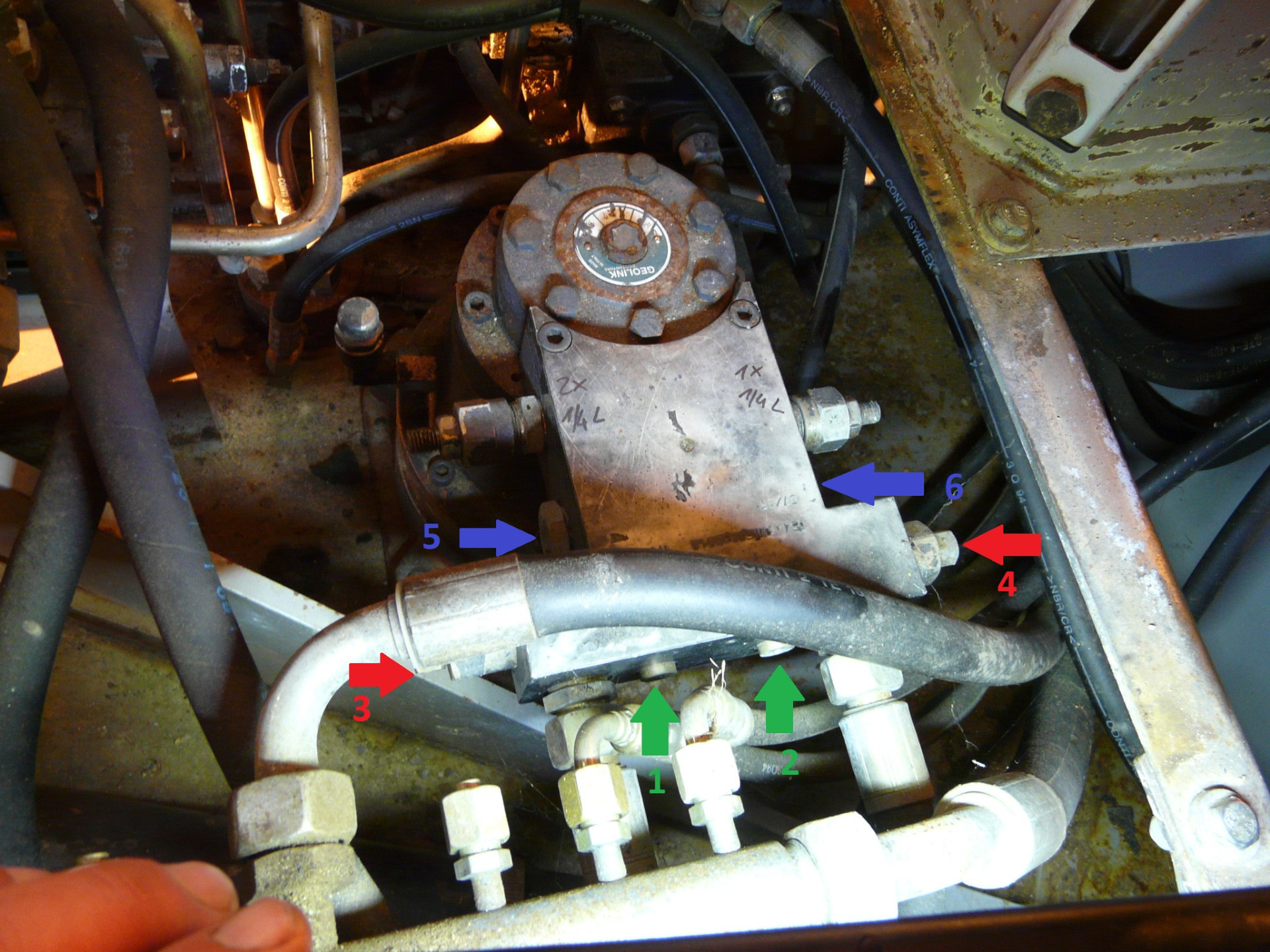 Hydraulix 366 Geschrieben 23. März 2022 Geschrieben 23. März 2022 vor 18 Minuten, Sir Quickly schrieb: Guten Morgen! Maschine: Schaeff HR16 Serie A (mit Lombardini Motor) Baujahr 1995 (Vorsteuerdruck wird vom Umlauf abgezapft, keine extra Pumpe für Vorsteuerdruck) Ich möchte die Hydraulikdrücke an meinem Geolink Schwenkmotor messen. Schaeff gibt im Schaltplan drei Drücke an: 28BAR 160BAR und 170BAR in P1. (Siehe Schaltplan) Vorrangig wären die 28BAR interessant, aber ich bin mir nicht ganz sicher, an welcher Messstelle ich den Druck benötige. Ich hab dazu den Schwenkmotor fotografiert und die Verschlussschrauben mit Nummern versehen. (siehe Bild) Könnte mir bitte jemand sagen, an welcher Stelle ich die 28BAR messen muss ? Mfg. Tom Hallo, nach dem Plan, Meßstelle1 und 2, denke ich. Hydraulix 1 Zitieren