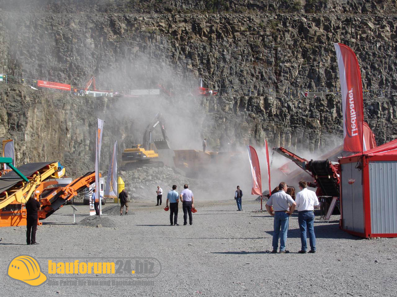 André 139 Geschrieben 6. September 2005 Geschrieben 6. September 2005 Homberg / Niederofleiden, (AB)Die Steinexpo 2005 fand erneut im grössten Basaltsteinbruch Europas in Homberg statt und bot Besuchern Gelegenheit sich über Neuigkeiten aus der Gewinnungsindustrie in einem praktischen Umfeld zu informieren.Gelobt wurde von den Ausstellern auch bei dieser Steinexpo die Möglichkeit die Geräte praxisnah präsentieren zu können. Die Besucher konnten es live erleben. So manche Vorführung ging staubig zu. Zufrieden zeigte sich Organisator Dr. Friedhelm Rese der während der Pressekonferenz begrüsste das auch in der momentan Zeit, in der besonders harter Wettbewerb am Markt herrscht, nicht am falschen Ende gespart wird und sich die Aussteller ihrer Zielgruppe auf der Steinexpo präsentieren. Herr Sven Hörschkes von der Firma Metso Minerals aus Bochum betonte in seinem Vortrag den Wandel den die Gewinnungsindustrie momentan aufgrund der verschärften Wettbewerbssituation vollzieht. So würden mobile Anlagen zunehmend an Bedeutung gewinnen da in den Betrieben auf diese Art und Weise erhebliche Kosten durch Wegfall langer Transportwege eingespart werden können.Herr Thomas Schlüter von Komatsu Schlüter ging ebenfalls auf den derzeitigen Wandel ein. Er nahm auch Stellung zu den Herausforderungen durch die neuen Emissionsbestimmungen und wies zugleich auf den Zielkonflikt zwischen Abgasnormen und Verbrauchseffizienz der neuen Motorengeneration hin. Zitieren
