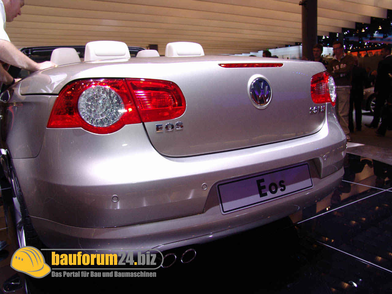 André 139 Geschrieben 19. September 2005 Autor Geschrieben 19. September 2005 Highlight bei Volkswagen war der EOS. Das Cabrio-Coupé mit festem Verdeck basiert auf der Plattform des Golf. EOS ist die Göttin der Morgenröte. Damit nicht nur in der Morgenröte, sondern auch in der strahlenden Sonne Freude aufkommt, entfaltet sich das fünfteilige CSC-Dach des Viersitzers innerhalb von 25 Sekunden. Lediglich der Kofferraum dürfte mit 205 Liter bei geöffnetem Dach etwas knapp für 4 Personen ausfallen. Geschlossen sind es immerhin 380 Liter. Entspannt: Die Kofferraumklappe bietet Servoschliessung wie in der Oberklasse. Motorenseitig bietet Volkswagen vier Benzinern und einen Diesel aus der Passat-Palette. Die Vierzylinder-Benziner leisten 115, 150 und 200 PS, dazu ergänzt ein Sechszylinder mit 250 PS die Preisliste. Der Selbstzünder ist der bekannte 2-Liter TDI mit 140 PS und serienmäßigem Partikelfilter. Im Frühjahr 2006 rollt der EOS zu den Händlern. Preis: ab 25.950 Euro.Auch der Kanzler warf, zusammen mit VW-Chef Pieschetsrieder und VW-Markenvorstand Wolfgang Bernhard einen Blick auf die Neuheit. Zitieren