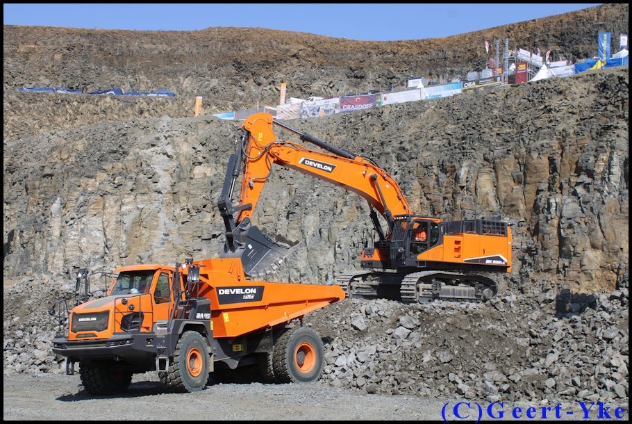 geertyke 1.392 Geschrieben 10. September 2023 Geschrieben 10. September 2023 Der neue 80 tons Develon DX 800LC-7 Raupenbagger auf der Steinexpo 2023. Zusammen mit ein DA 45-7 4x4 Muldenkipper. 1 Zitieren