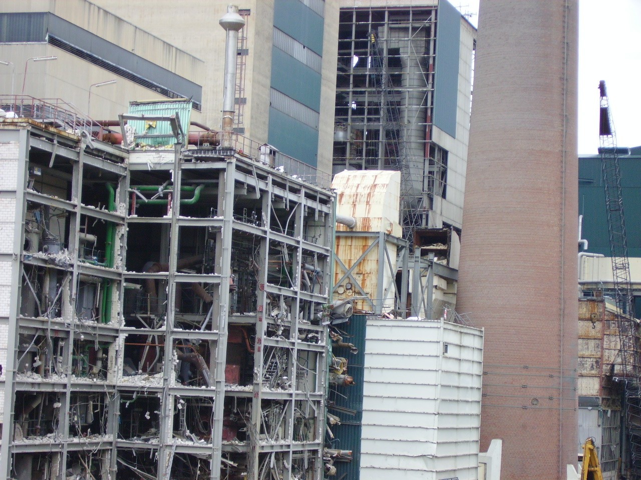 arzbergaa 174 Geschrieben 19. September 2023 Autor Geschrieben 19. September 2023 (bearbeitet) Mai, 2006 Abriss des ehemaligen Parkdecks der Mitarbeiterparkplätze. Auch wurde begonnen das Kesselhaus 7 zu entkernen, erste Fassadenteile wurden demontiert. Nochmal Kessel 7 während der Entkernung sowie links die beide Kühltürme für Kessel 6 und 7, Kessel 7 und die beiden Kühltürme sollen im September 2006 fallen bzw. sind es schon, aber dazu irgendwann mehr.. wir sind ja schließlich erst im Mai 2006 🙂 Demontage des Elektrofilters von Block 7. Erstes angefallenes Futter für den Brecher.. 😉 Lader vor dem Schornstein von Block 5.. (schon winzig im Gegensatz zum Schornstein.. 😁), darüber verlaufen wenn ich mich nicht täusche die Förderbänder für die Bekohlung der Blöcke 5 und 7, Block 6 wurde mit Erdgas befeuert und konnte alternativ auch mit Öl befeuert werden.. Bilder mit den nächsten Schritten des Rückbaus folgen in den kommenden Tagen.. Grüße an alle! 😁 bearbeitet 19. September 2023 von arzbergaa 8 Zitieren