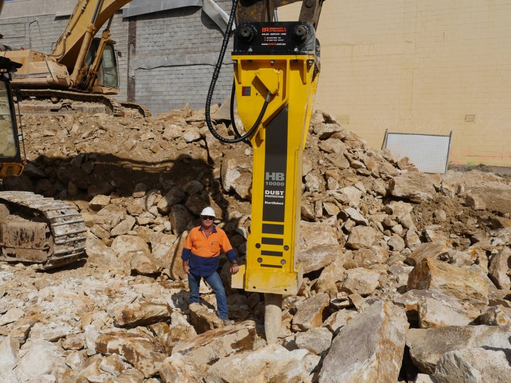 September 2016 - Vor Kurzem erhielt Atlas Copco zum ersten Mal eine Bestellung für seinen Hydraulikhammer HB 10000 aus Saudi-Arabien. Es ist der größte kommerziell vertriebene Hydraulikhammer der Welt. Auch in der australischen Metropole Brisbane führt ein Tiefbauunternehmen den neuen 10-Tonnen Hyddraulikhammer ein.