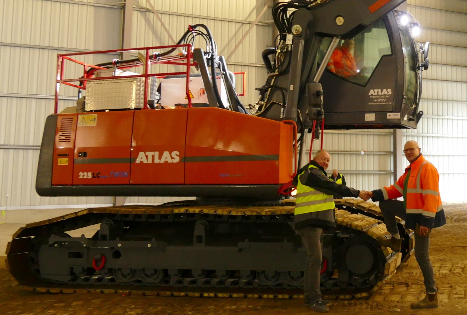 Ronald Figiel (Atlas von der Wehl) und Carsten Bubke (Technischer Leiter Heidekreis) v.l. bei der Baggerübergabe.