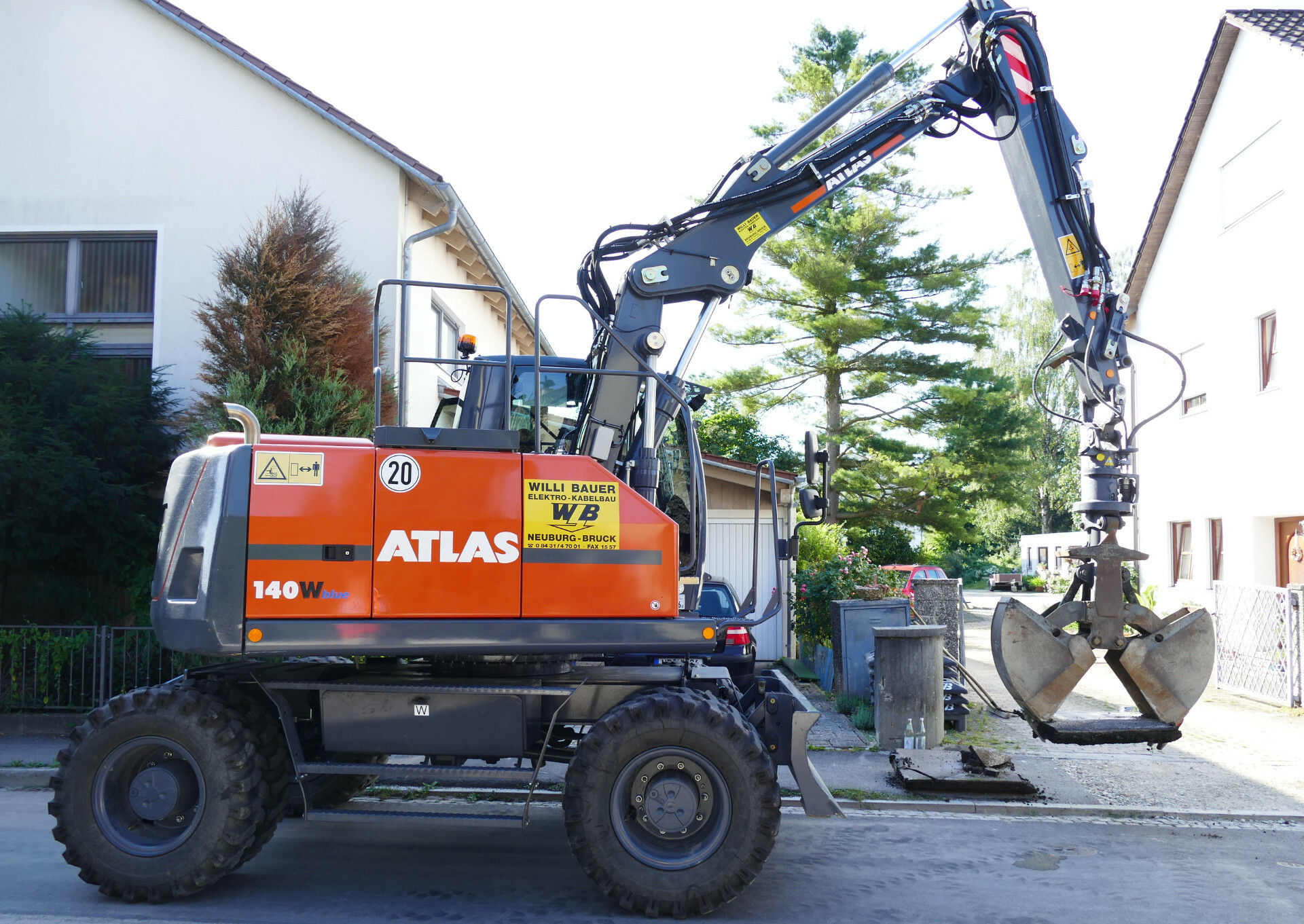 Die Firma Willi Bauer Elektro – Kabelbau aus Neuburg/Donau bietet den Komplettservice im Kabelbau. „Vom Leitungsgraben über den Verteiler bis zum Hausanschluss und dem Sicherungskasten im Haus bauen wir alles aus einer Hand“, sagt Willi Bauer, Geschäftsführer in dritter Generation. Die perfekte Unterstützung hierbei sind die ATLAS-Bagger, die Bauer im Einsatz hat. Der neueste, ein 16-t-Mobilbagger 140 W (neue Bezeichnung ATLAS 155 W) macht das Arbeiten durch seine Kraft und unglaublich präzise Steuerung schnell und sicher. Basis ist der Vierzylinder Deutz Motor mit 115 kW/156,3 PS.