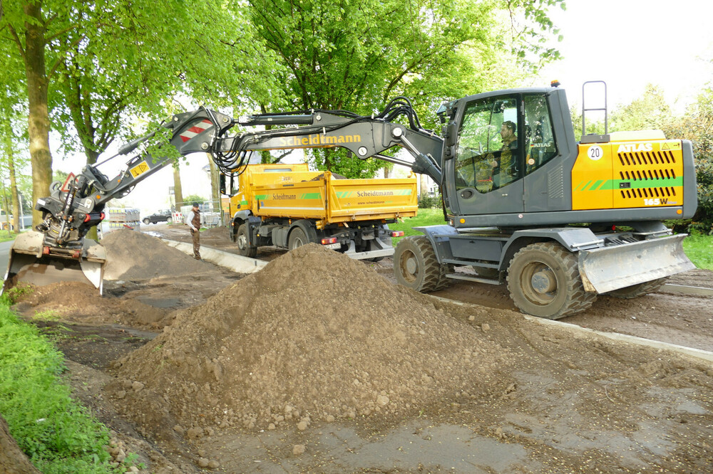 Ganderkesee - Das neueste ATLAS-Modell 165 W in der 17 Tonnen Klasse arbeitet zügig und leise, um den Untergrund für einen 2 km langen Fuß- und Radweg in Marl zu erstellen. Der 4 Zylinder Motor mit 105 kW/142,7 PS liefert enorm viel Kraft und ist trotzdem leise. In der Fahrerkabine hat man einen Geräuschpegel von 69 dB(A). Das ist enorm wenig. Für das Hydrauliksystem liefert er die Voraussetzung, um 350 bar Betriebsdruck zu erzeugen mit einer maximalen Fördermenge von 234 Litern auch für drei zusätzliche Hydraulikkreisläufe.