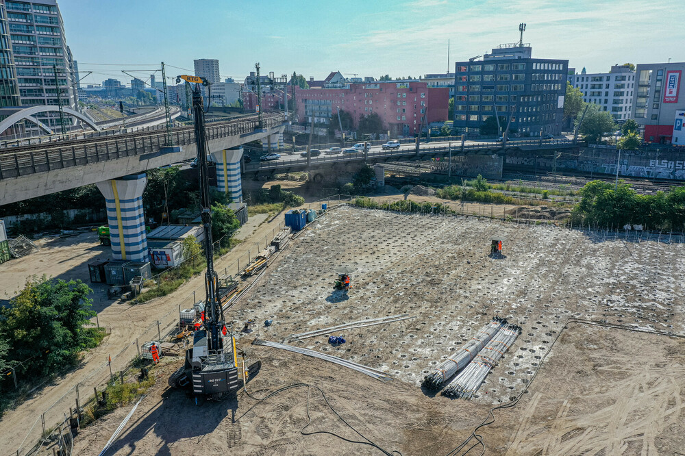 Berlin - Brummende Motoren, qualmende Auspuffe und der Geruch von Abgasen und Diesel – das Bild einer typischen Großbaustelle? Nicht am Friedrich-Krause-Ufer in Berlin. Für das 32.000 m² große Büroprojekt Port ONE Berlin, realisiert von der M-Port Optima Office Center GmbH, setzt die BAUER Spezialtiefbau GmbH in Zusammenarbeit mit der RTG Rammtechnik GmbH, einem Tochterunternehmen der BAUER Maschinen GmbH, auf innovative Technologie.