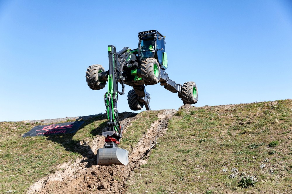 Schwindelfrei muss auch der Baggerführer des Schreitbaggers sein, der bei der Digitalen Baustelle gerade, wie eine Spinne, die steile Böschung hochklettert. Makineo präsentiert sich hier und führt die Maschinensteuerung vor. Die Aktion des Schreitbaggers zieht alle Aufmerksamkeit auf sich: Für diese Maschine scheint Schwerkraft nicht zu existieren. Tatsächlich sind der Bagger und sein Besitzer Sven Fallert von Fallert GmbH aus dem Schwarzwald keine Aussteller, sondern zu Gast bei Makineo. Fallert genießt die Praxistage: „Es ist wie auf der bauma, nur familiärer und mit mehr Zeit und Raum fürs Ideensammeln, Diskutieren und Netzwerken.”![]()