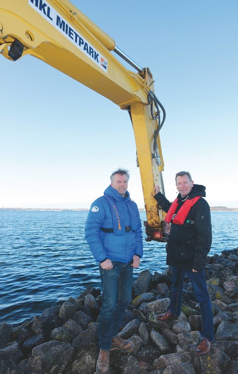 Der für die Gemeinde nördlich von Kiel bedeutsame Hafen ist in die Jahre gekommen. Zudem führen immer öfter auftretende Hochwasser dazu, dass die Stege überschwemmen und die Boote nicht mehr zugänglich sind. Nun wird die Anlage schrittweise saniert und die Stege höher gelegt. Für den ersten Bauabschnitt mietet Berke einen Yanmar ViO80 aus dem HKL Center Kiel. Auf Wunsch des Kunden stattete das Team der Servicewerkstatt die Maschine für die sensiblen Anforderungen am Wasser vorab mit biologisch abbaubarem Hydrauliköl aus. So ist der leistungsstarke und standsichere Kurzheckbagger eine zuverlässige Unterstützung für die Arbeiten auf der schmalen und felsigen Mole.