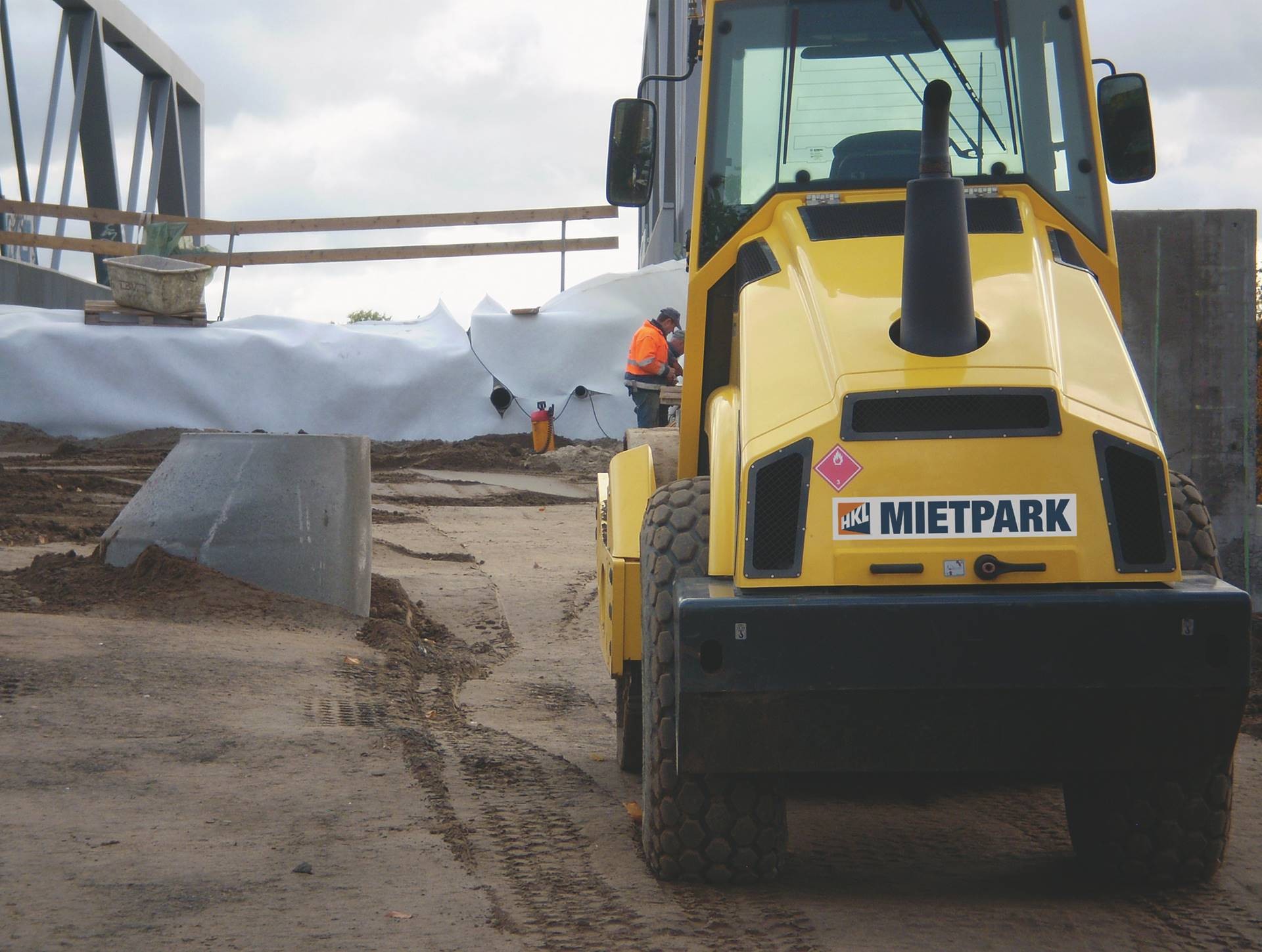 Walzenzüge verdichteten provisorische Betriebswege und die Zufahrtswege zum neuen Standort der Brücke. Für Aushubarbeiten im Zuge des Düker- und Brückenbaus kam Ein 15-Tonnen-Raupenbagger und ein wendiger Minibagger zum Ausheben der Kabel-und Leitungsgräben am Ufer des Dortmund-Ems-Kanals zum Einsatz. Über den gesamten 3-jährigen Bauzeitraum stellt HKL in unterschiedlichen Bauphasen Maschinen und Geräte bereit. Ob Stemmhammer, Rüttelplatte oder Stromerzeuger.