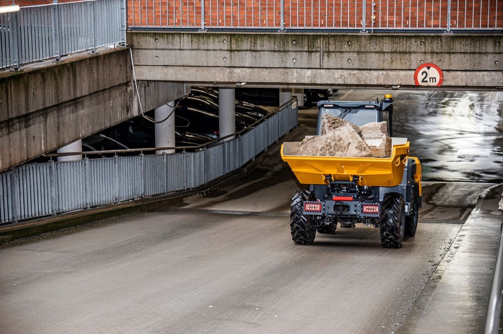 Das Alleinstellungsmerkmal des 804e liegt in seiner einzigartigen Nutzlast: Während andere Elektrokonzepte bei einer maximalen Nutzlast zwischen 500 und 1.500 kg an ihre Grenzen stoßen, transportiert der neue E-Bergmann bis zu 3,5 t pro Fuhre. Entsprechend robust sind die zwei massiven Stahlrahmen ausgelegt, die durch ein pendelndes Drehgelenk miteinander verbunden sind. In Kombination mit Allradlenkung und einem drehbaren Fahrerstand setzt Bergmann mehr als 50 Jahre Dumper-Erfahrung in einem völlig veränderten Bauraum um. Das Ergebnis ist ein echter geländegängiger Allradtransporter ohne Kompromisse – geschaffen für professionelle Anforderungen im urbanen Umfeld der Städte.