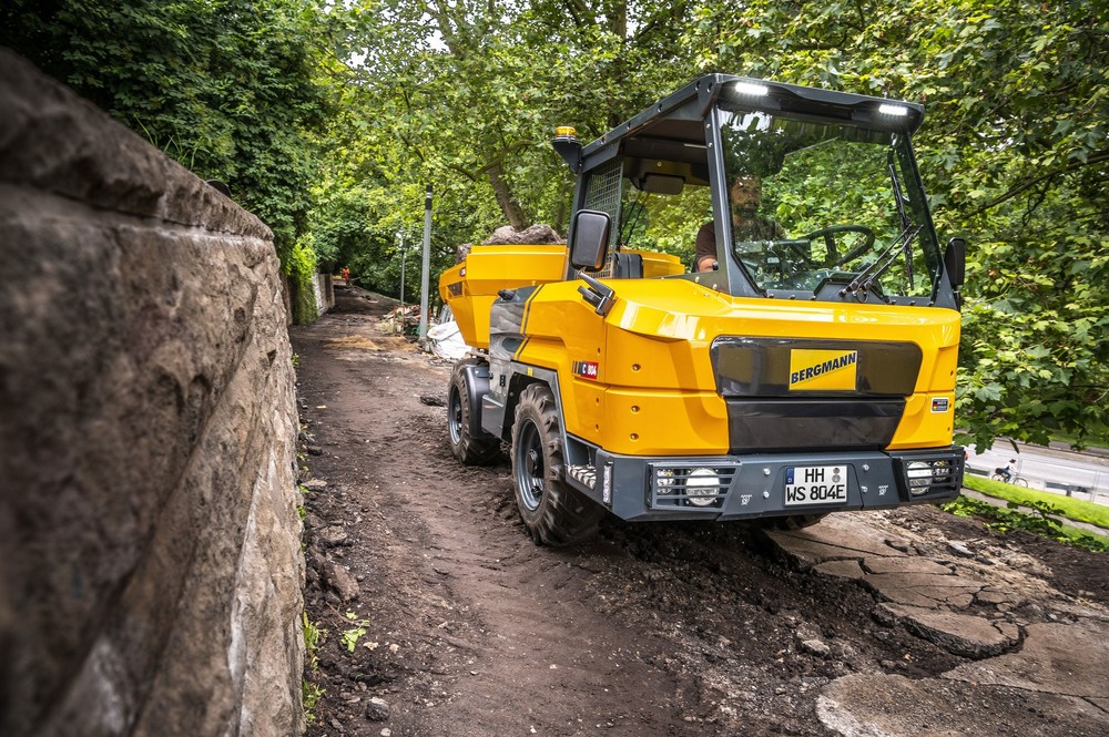 Die Zugkräfte und die Batterielaufzeit des Dumpers sind enorm: „Egal, ob wir voll beladen aus der Baustelle an Steigungen fahren oder eben schnell Material aus dem Außenlager holen wollen“, berichtet der Maschinenführer. Der Dumper mit seiner 4-Rad-Lenkung und einer Höhe von gerade einmal 2.000 mm eignet sich optimal für den Einsatz auf beengten Baustellen im Stadtbereich.