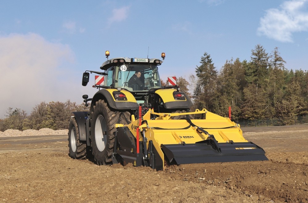 Moderne Traktoren sind universelle Zug- und Antriebsmaschinen. In Kombination mit optimal abgestimmten Anbaugeräten erobern sie sich immer neue Einsatzgebiete und überzeugen auch bei schweren Erdbauarbeiten. Die neuen BOMAG Anhängefräsen RS 250 und RS 300 schließen jetzt eine Lücke im Fuhrpark von Baufirmen und Dienstleistern, die eine flexible und ökonomische Traktor-Lösung für das Fräsen, Stabilisieren und Mischen von Böden suchen. Besonders auf kleineren Baustellen, aber nicht nur dort, bieten sich die leichten und wendigen Systeme als perfekte Ergänzung an. Sie sorgen für eine noch bessere Auslastung von Traktoren, die auf Grund ihrer Multifunktionalität und Flexibilität von modernen Baustellen heutzutage nicht mehr wegzudenken sind. Ein zentrales Anwendungsszenario stellt die Bodenstabilisierung dar: Hier kann der Traktor nun durchgängig und vielseitig genutzt werden als Zugmaschine für Bindemittelstreuer, Wasserfass und Anhängefräse.