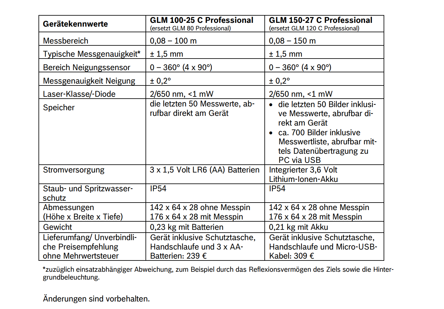 Der Batterie-betriebene GLM 100-25 C Professional ist ab April erhältlich, der Akku-betriebene GLM 150-27 C Professional ab Juni. Alle Preise verstehen sich als unverbindliche Preisempfehlung zuzüglich Mehrwertsteuer.