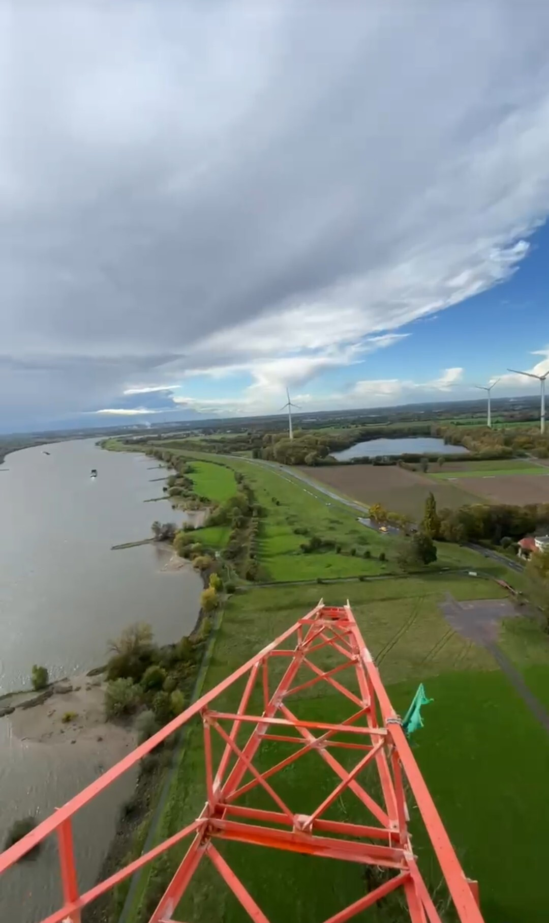 Der Blick von der Helmkamera aus knapp hundert Metern Höhe.