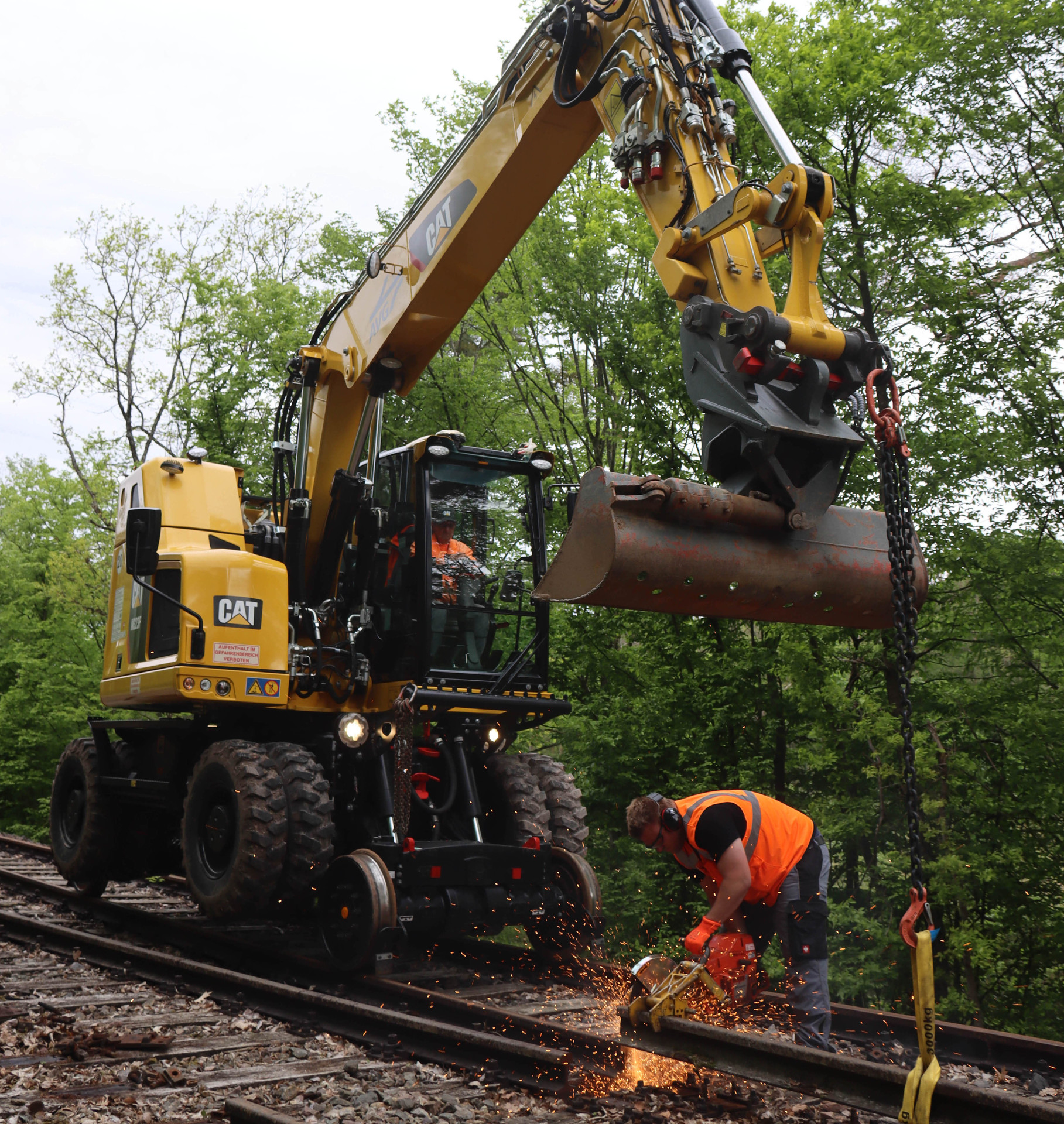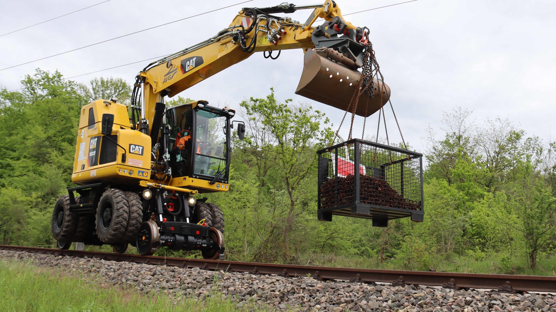 Der Cat Zweiwegebagger unterstützt die AVG bei der Inspektion, Wartung, Instandhaltung und Erneuerungen.