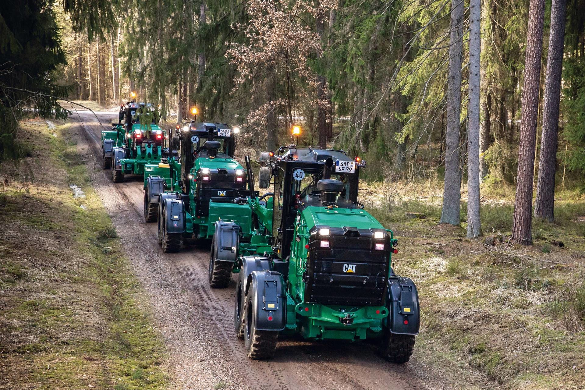 Bodenwöhr, Mai 2019 - Haben die Erntemaschinen tiefe Spuren auf den Forstwegen hinterlassen, müssen Motorgrader ausrücken. 808 000 Hektar Fläche Wald bewirtschaften die Bayerischen Staatsforsten, einer der größten Forstbetriebe Mitteleuropas – etwa ein Drittel der Waldfläche Bayerns ist im Eigentum des Freistaats. Der Holzeinschlag erfordert jedoch gut erhaltene geschotterte Forstwege. 25 000 Kilometer macht die Strecke aus, die ganzjährig befahrbar sein muss. Doch die Holzabfuhr nimmt diese stark in Anspruch. Zur Wegepflege und zum Wegeneubau haben die Bayerischen Staatsforsten in drei neue Cat Motorgrader vom Typ 140M3 investiert. Ausgeliefert haben sie Franz Bösl, Niederlassungsleiter, und Xaver Mückl, Verkäufer, von der Niederlassung Straubing. Das Einsatzgebiet der Baumaschinen verteilt sich auf den Norden, die Mitte und den Süden von Bayern, um von dort aus die Forstwege anzusteuern. Geplant wird der Maschineneinsatz von Bodenwöhr aus, dem Stützpunkt der Forsttechnik der Bayerischen Staatsforsten.