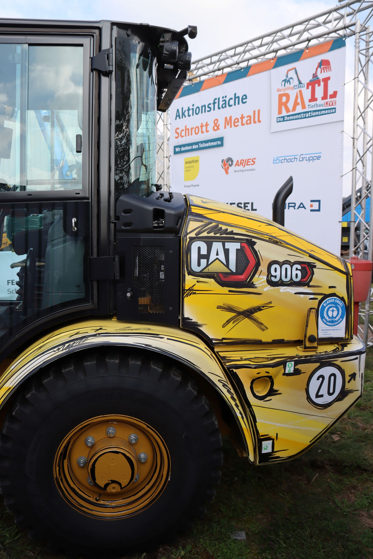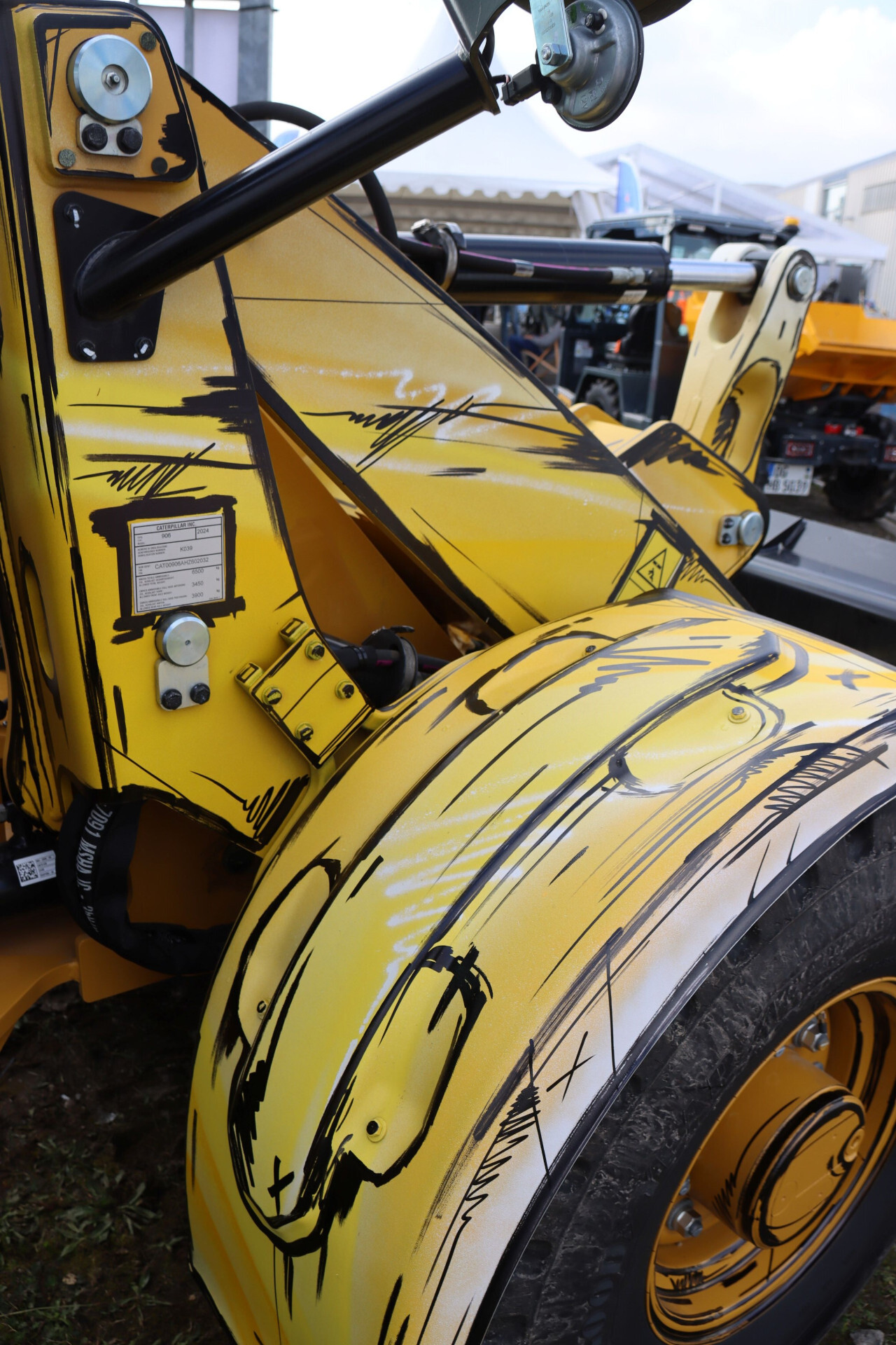 Mit einem Graffitistift hat Alexander Bloch die Konturen am Cat Radlader nachgezogen.