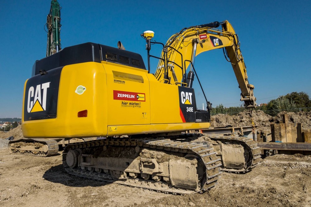 Zeppelin Rental stattete den Mietbagger CAT 349 E mit GNSS-Steuerung und einer Panzerglasscheibe aus