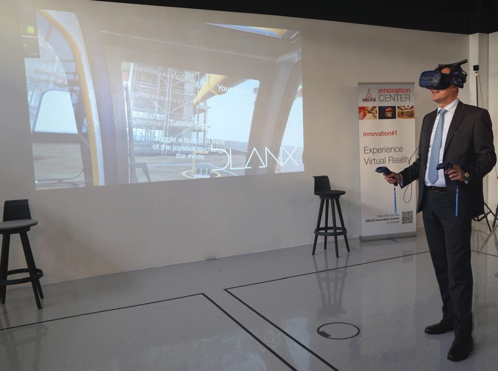 DEUTZ Vorstandsvorsitzender Dr. Frank Hiller testet die neueste Augmented Reality-Technik im DEUTZ Innovationcenter.