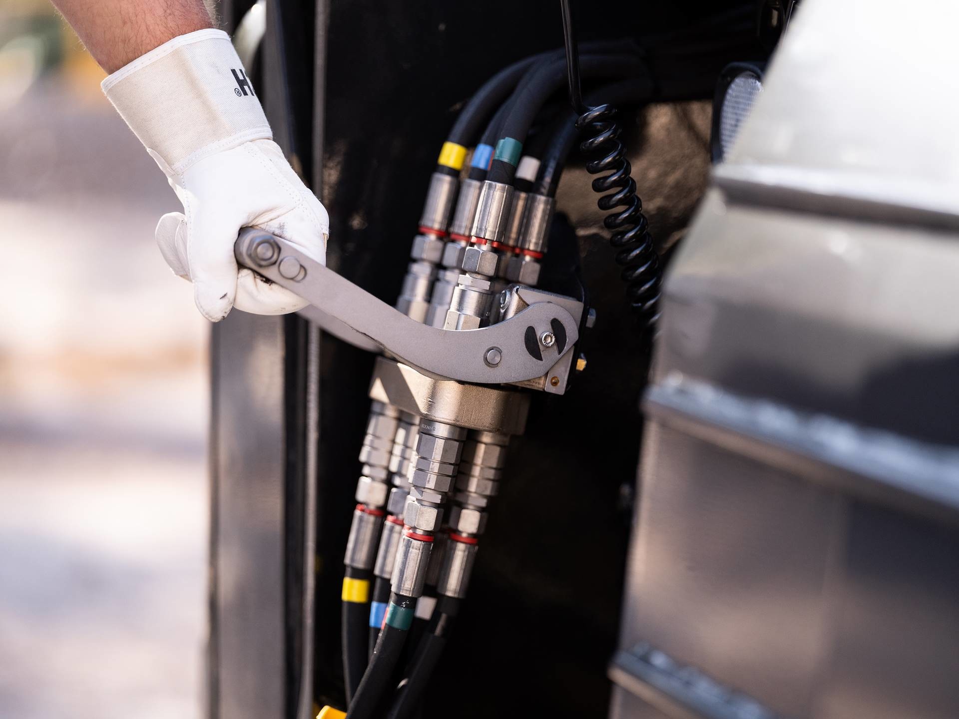 Optimierte Mehrfachkupplung: Schnelle Abtrennung des Schwanenhalses mit automatischer Druckentlastung.