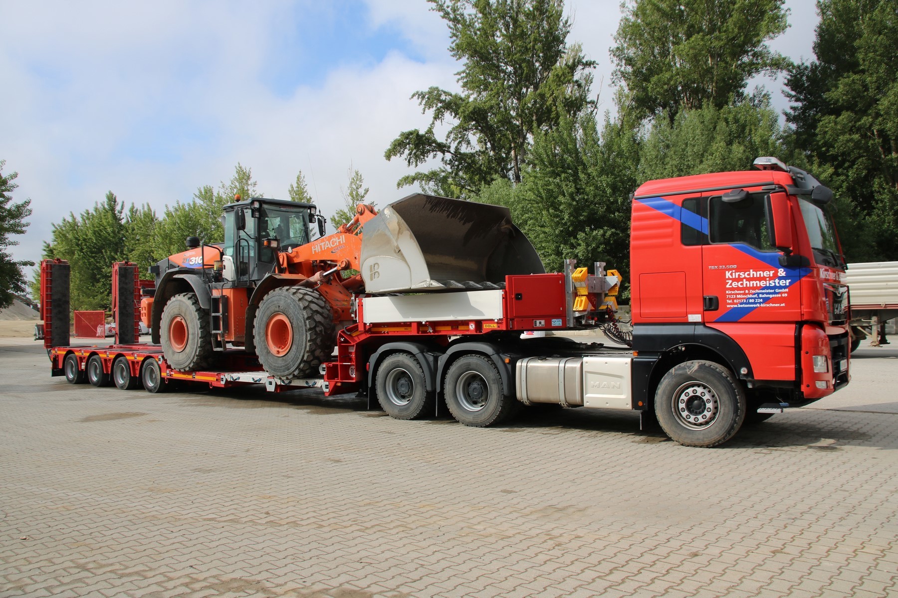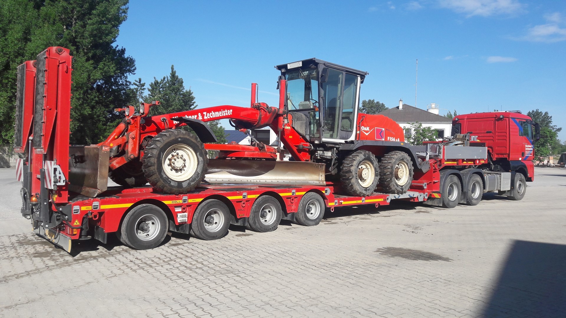 Seit Anfang Mai ergänzt ein maßgeschneiderter Semitieflader vom Typ DOLL Vario S4H-GR3S18 den Fuhrpark der österreichischen Kirschner & Zechmeister GesmbH. Gerhard Fischbach, technischer Leiter des Unternehmens, skizziert die Anforderungen: „Ganz oben im Lastenheft stand die Möglichkeit, alle unsere eigenen Baumaschinen und bei Bedarf auch noch weitere laden zu können. Die dabei geforderte Flexibilität erklärt sich mit Blick auf unseren Maschinenpark von selbst: Die Bandbreite reicht von Radladern über Grader bis zum 30-Tonnen-Kettenbagger.“ Besonders beeindruckt hat den 49-Jährigen, dass DOLL den kompletten Maschinenpark in die Planung des Aufliegers einbezogen hat: „Die Konstrukteure haben sich ganz genau angeschaut, welche Maschinen wir haben und wie die im Einzelnen zu verladen sind. Entsprechend wurden alle Ausstattungsmerkmale und Zusatzoptionen am Semitieflader angepasst.“