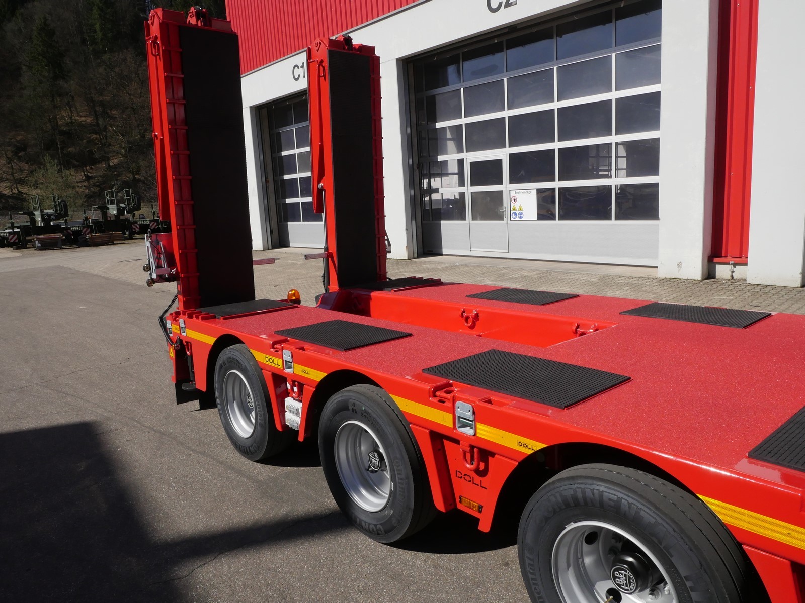 Mönchhof im Burgenland, Juni 2019 - Einen besonders flexibel einsetzbaren Semitieflader aus der Baureihe DOLL Vario hat die Kirschner & Zechmeister GesmbH kürzlich in Dienst gestellt. Ein besonderer Fokus lag auf abgesetzten Fahrflächen für den Transport unterschiedlichster Baumaschinen.