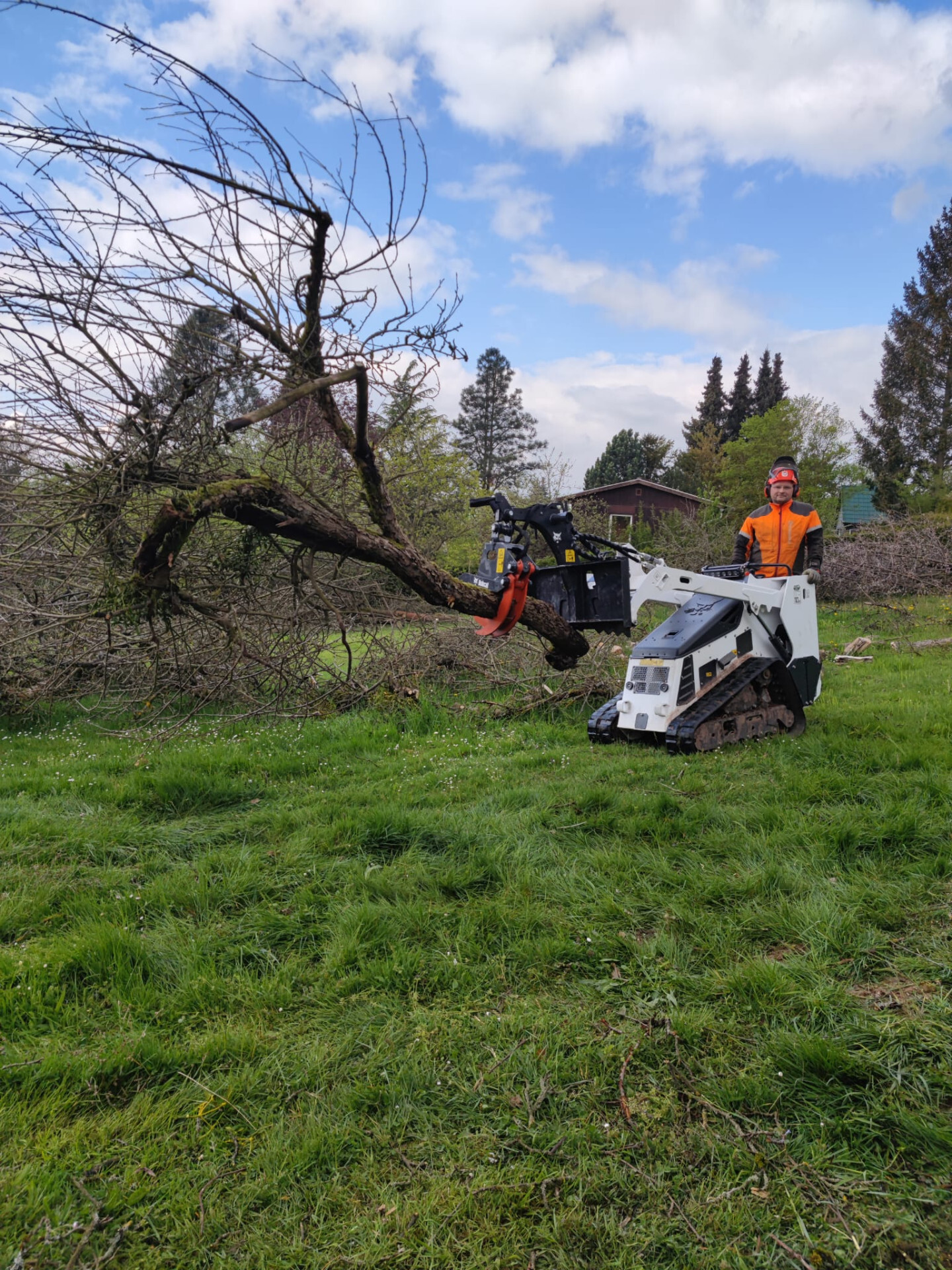 Mit seiner beeindruckenden Hubkraft bewältigt der kompakte Raupenlader auch schwere Stämme mühelos.