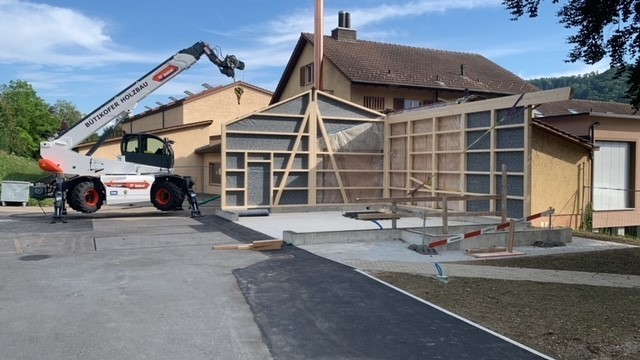 Um die Maschinen jederzeit vollständig auslasten zu können, vermietet Bütikofer seine Geräte außerdem für Kran- und Hebearbeiten samt Fahrer. So hat er schon bei diversen Projekten im Ort geholfen, zum Beispiel bei der Lichtmontage im örtlichen Reitstall oder Fußballverein. Auch beim Transport von Holzkühen, die ein Hünikoner Künstler schnitzte und die nun den Schweizer Ort schmücken, war sein Teleskoplader im Einsatz.