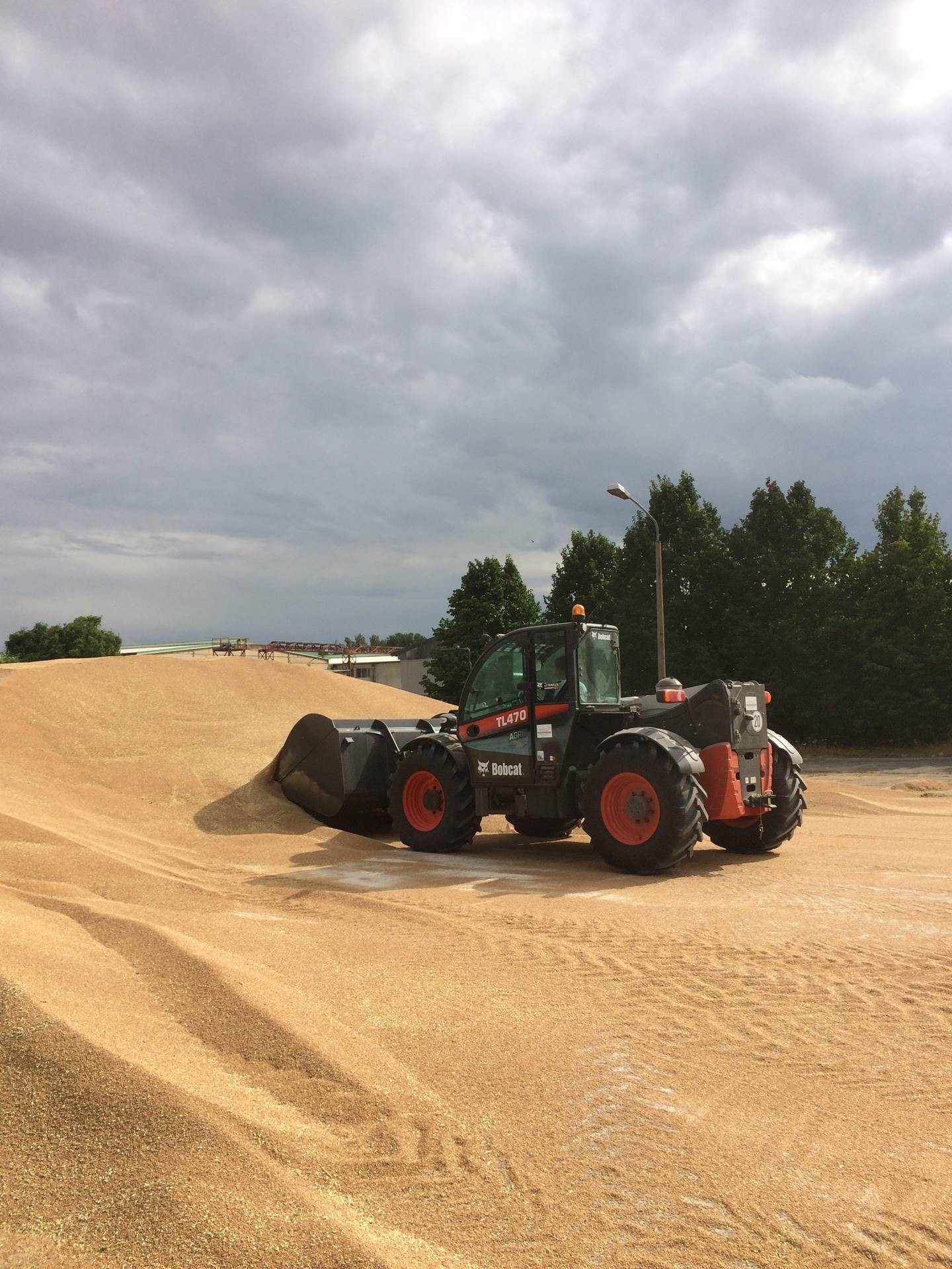 Mit der 3 m³-Schaufel arbeitet der Bobcat TL470HF Agri im Getreideumschlag besonders effizient
