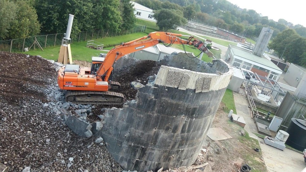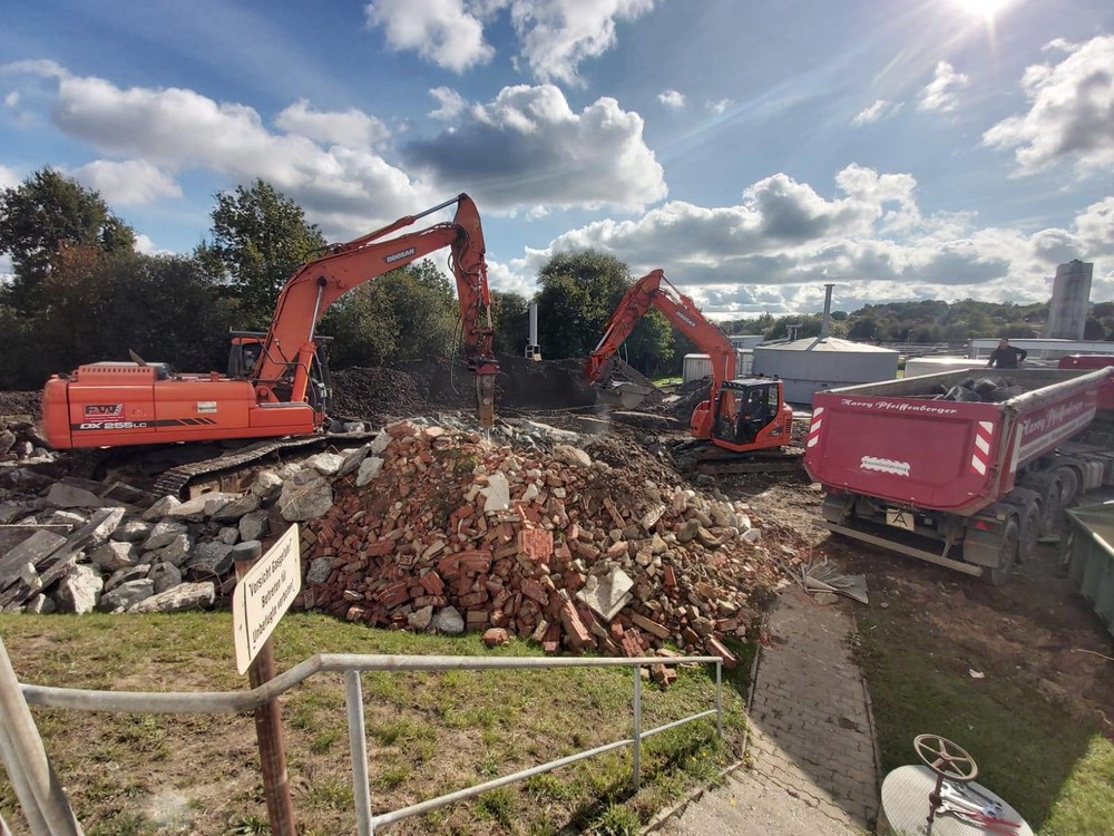Beim Abbruch eines Sickerbehälters im Klärwerk Malente stellte der Doosan DX255LC seine Effizienz und Kraft eindrucksvoll unter Beweis. Für den Abbruch des Sickerbehälters mit einer Höhe von 14 Metern und einem Durchmesser von ebenfalls 14 Metern waren inklusive Aufbereitung der rund 200 m³ abgebrochenen Betons und rund 800 m³ Lavagesteins drei Wochen geplant. Abschließen konnte Wessel das Projekt bereits nach zwei Wochen. Einer der Gründe war der störungsfreie Betrieb der eingesetzten Baumaschinen. „Auf die Doosan-Maschinen kann ich mich voll und ganz verlassen, das ist für mich als mittelständischer Unternehmer ein wichtiger Faktor“, erläutert Wessel. Während der 25-Tonnenbagger DX255LC den Abbruch und mit Hilfe eines Backenbrecherlöffels die Aufbereitung durchführte, kam ein 14-Tonen schwerer DX140LCR beim Verladen auf die unternehmenseigenen Lkws zum Einsatz.