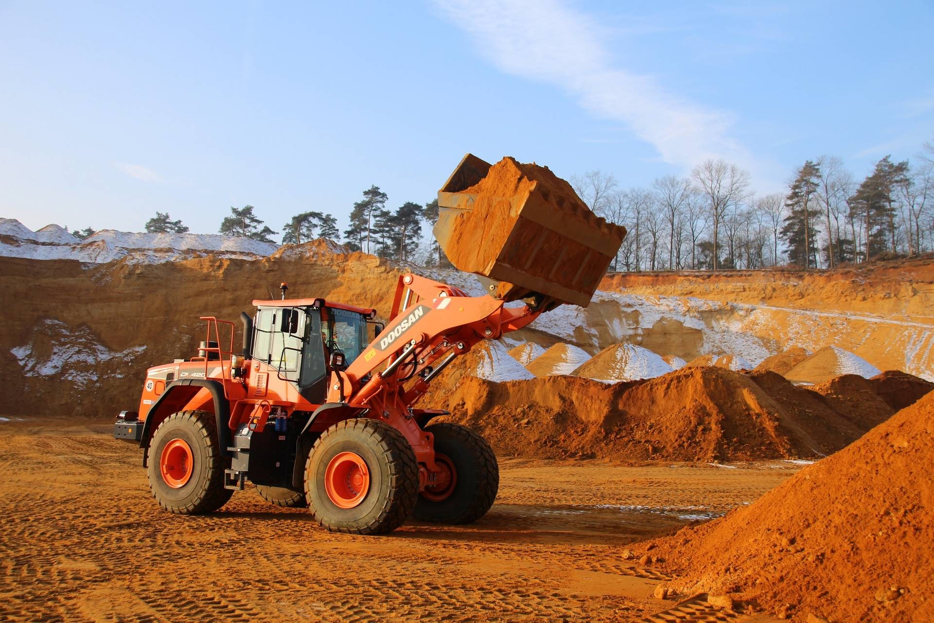 Die beiden Doosan-Radlader sollen die ersten Maschinen der Marke Doosan, die das Unternehmen in seinem Betrieb einsetzt sein. Dazu René Boer, Leiter der Sandgrube Dorsten: „Als es um die Anschaffung der neuen Radlader ging, erwähnte einer unserer Mitarbeiter seine sehr guten Erfahrungen mit Doosan-Maschinen und dass man sich die auf jeden Fall auch mal anschauen sollte. Daher sprachen wir mit Max Gutmann vom Doosan-Händler Kraemer der uns auch prompt eine Vorführmaschine stellte, die wir 14 Tage bei uns in der Sandgrube testen konnten. Der DL420-5 überzeugte uns in dieser Zeit, sodass wir zwei Doosan DL 420-5 in genau der Konfiguration bestellten, über die auch die Testmaschine verfügte“. Boer ergänzt: „ Die Zusammenarbeit mit Kraemer funktionierte von Anfang an gut, sowohl während des Tests vor Ort als auch bei der anschließenden Bestellung und Auslieferung der Maschinen wurden alle Zusagen eingehalten. Und was ja auch nicht unwichtig ist, war das die Chemie von Anfang stimmte.“