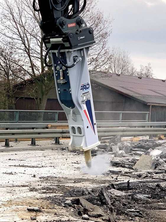 An den Baustellen im Einsatz ist ein Furukawa FRD Hydraulikammer FXJ770 mit 4800 kg Einsatzgewicht, an einem 50 Tonnen Bagger angebaut. Eine ideale Kombination für massive schwere Abbrucharbeiten. Das Staubschutzsystem, das einteilige Gehäuse und die serienmäßige Leerschlagsicherung machen den FXJ770 auch bei höchsten Beanspruchungen zu einem geräuscharmen Hydraulikhammer mit hoher Verfügbarkeit.