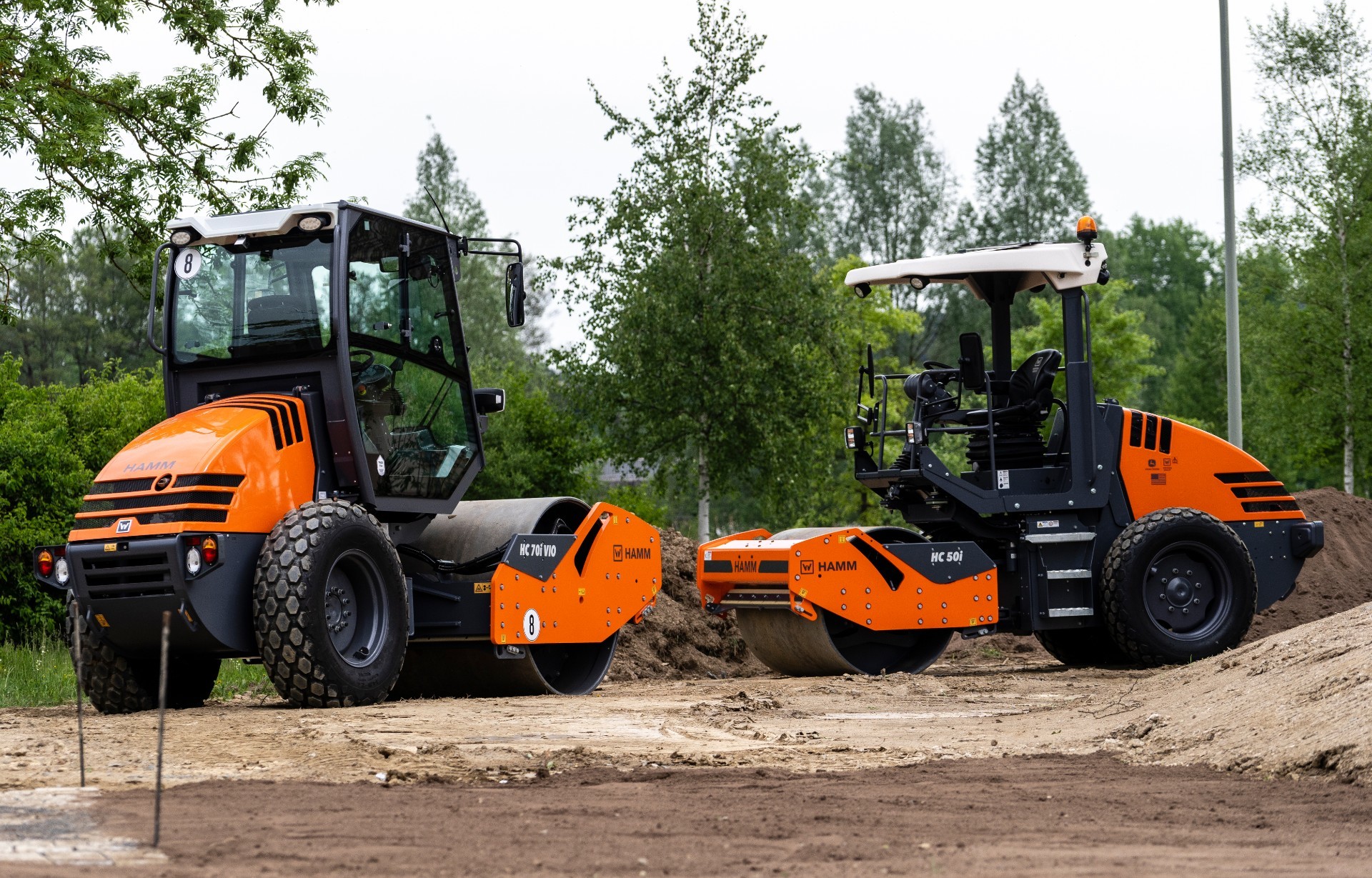 Hamm bietet in der HD CompactLine eine große Modellvielfalt. Es gibt Tandemwalzen mit Vibrations- oder Oszillationsbandagen (VV bzw. VO), Kombiwalzen (VT) und eine Gummiradwalze (TT). Die Einsatzgewichte der HD 8 – HD 14(i) reichen von 1,5 bis 4,5 t. Sie decken Bandagenbreiten von 800 - 1400 mm ab. Die rein elektrisch angetriebenen Walzen von Hamm sind erkennbar am "e" in der Modellbezeichnung. Die HD 10e (Bandagenbreite: 1000 mm) wiegt 2,5 t, die HD 12e (Bandagenbreite: 1200 m) bringt 2,7 t auf die Baustelle. Die Elektro-Modelle HD 10e und HD 12e gibt es mit zwei Vibrationsbandagen (VV), mit einer Vibrations- und einer Oszillationsbandage (VO) und als Kombiwalze mit Vibration (VT) oder Oszillation (OT). Im Segment der kompakten Walzenzüge bietet Hamm Modelle mit Glatt- oder Stampffußbandagen sowie zweiteilige Stampffußschalen an. Die HC 70i ist zudem mit VIO-Bandage erhältlich. Sie kann wahlweise mit Vibration oder Oszillation verdichten und deckt damit eine enorme Breite an Anwendungen ab.