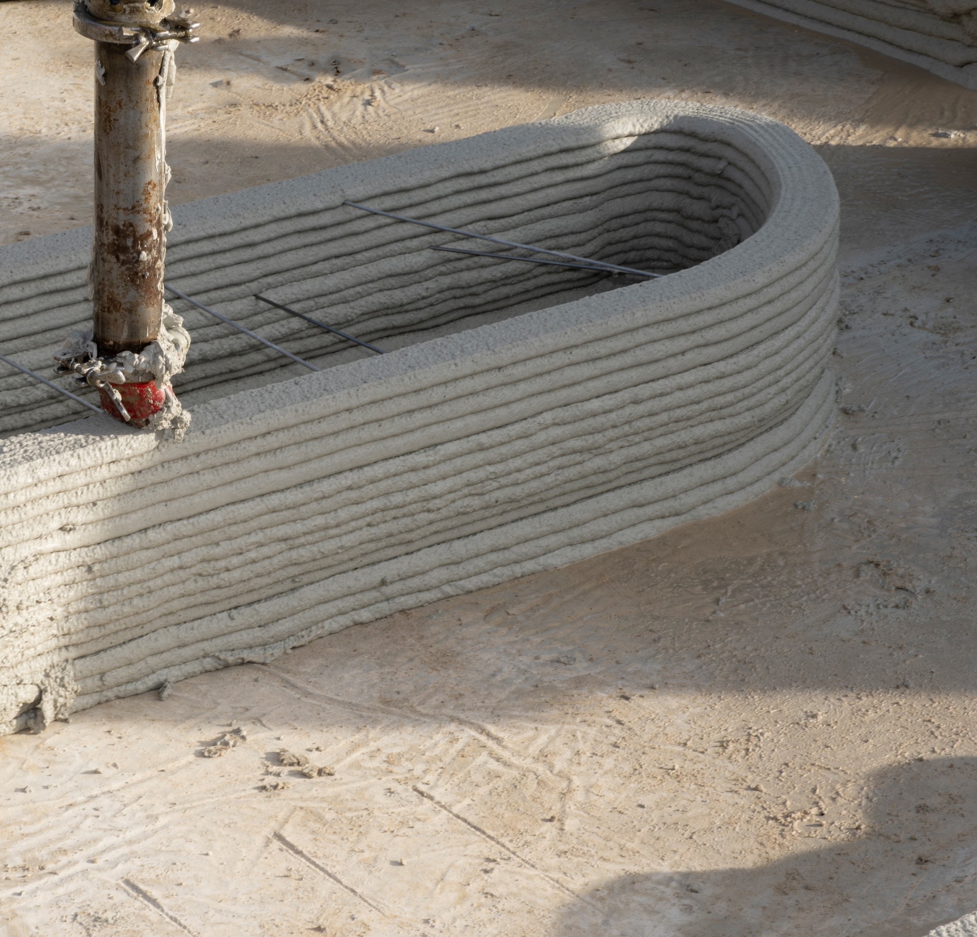 Der 3D-Druckbeton ist ein mineralisches Material und zu 100 % recyclebar.