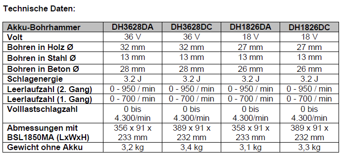 Auf der Baustelle haben es die Anwender mit ganz unterschiedlichen Materialien zu tun. Mit den neuen Akku-Bohrhämmern DH3628DA und DH3628DC können sie den jeweils passenden Modus für ihre Arbeit wählen: Ob als Bohrhammer, als reiner Bohrer oder im Meißelmodus – der DH3628DA und der DH3628DC liefern immer das optimale Ergebnis. Dabei sind die Akku-Bohrhämmer besonders kraftvoll. Beim Arbeiten in Beton liegt der maximale Bohrdurchmesser bei 28 Millimetern, in Holz sogar bei 32 Millimetern. Für die Stahlbearbeitung können Bohrer bis zu einem Durchmesser von 13 Millimetern eingesetzt werden. Das sogenannte LED LEVEL zeigt an, ob das Werkzeug gerade gehalten wird – für präzises Bohren.