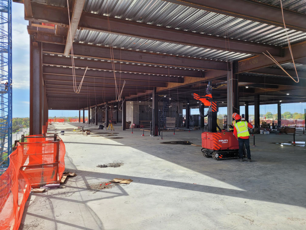 Kaufering, Juni 2022 - Jaibot ist Hilti‘s semi-autonomer, mobiler Baustellenroboter, der Bohrungen für Dübel-Befestigungen auf der Grundlage digitaler Planungsdaten selbständig ausführt. Seit seiner Einführung Ende 2020 hat der Jaibot in zahlreichen Bauprojekten weltweit dazu beigetragen, die Produktivität bei der Ausführung von Installationen im Bereich Heizungs-, Lüftungs- und Klima- sowie im Elektro- und Deckenbau durch seine konstante Leistung, höhere Genauigkeit und verbesserte Arbeitssicherheit zu steigern.