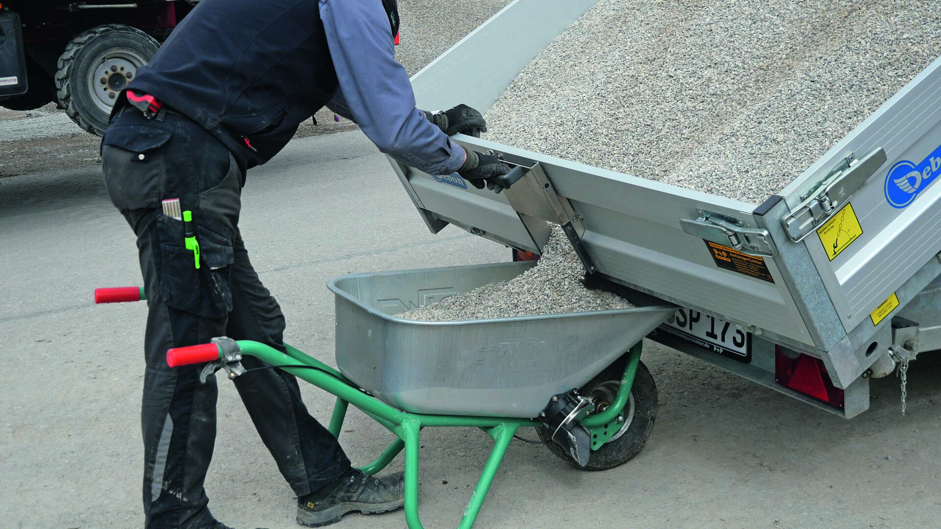 Valley - Mit der neuen Dosier-Schubkarre stellt Hunklinger ein Werkzeug vor, das Arbeitsabläufe im Wege- und Pflasterbau deutlich erleichtert. Neben einer erheblichen Zeitersparnis sorgt die Dosier-Schubkarre vor allem für eine spürbare Entlastung des Rückens.