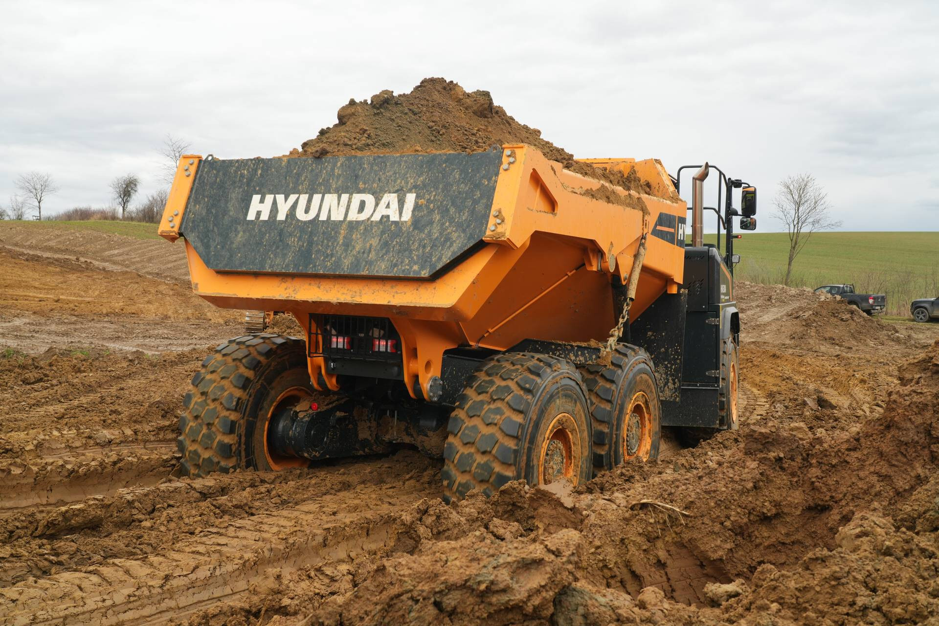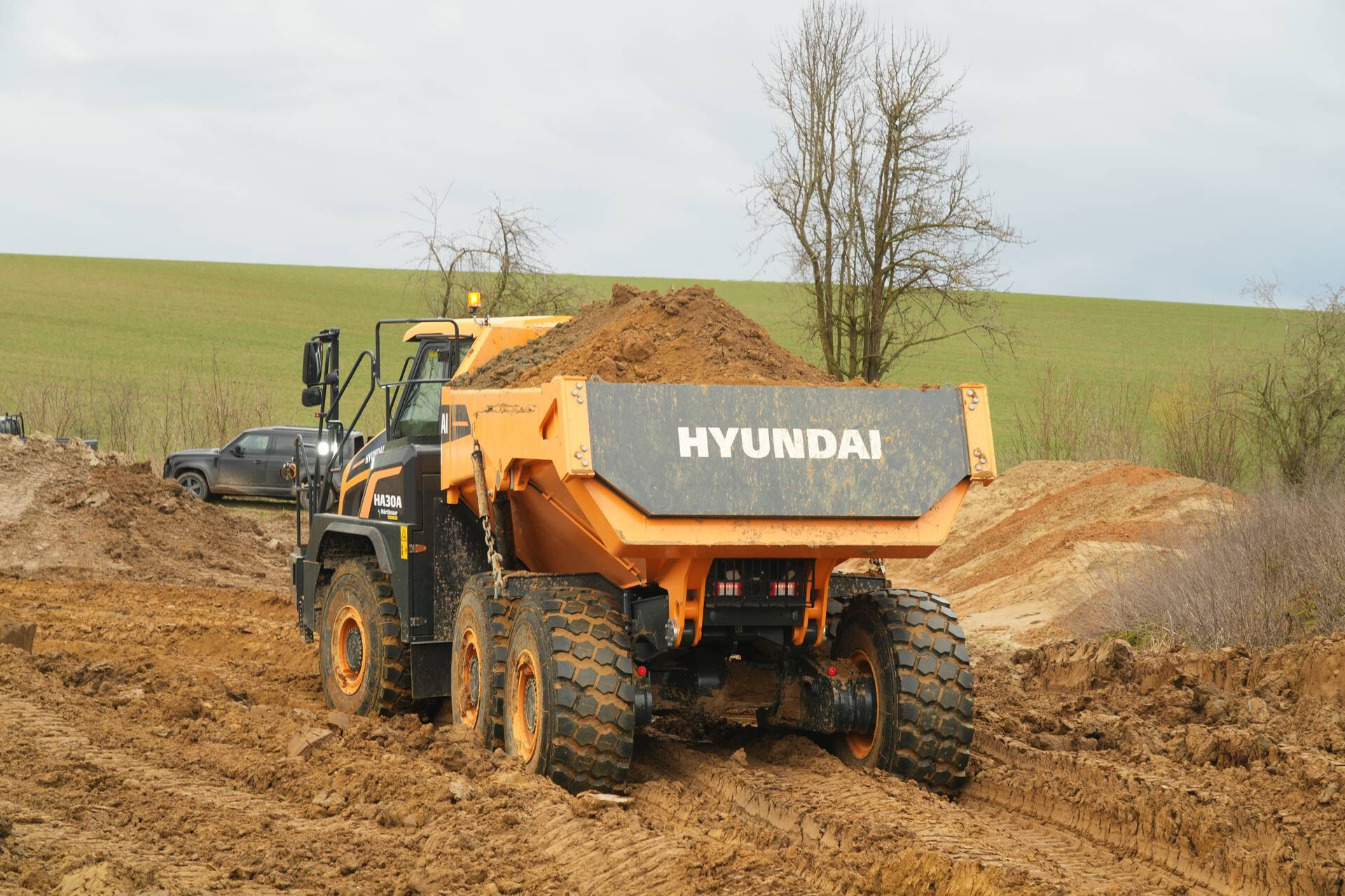 Tessenderlo-Ham (Belgien) - Die Knickgelenkten Muldenkipper (Dumper) HA30A und HA45A von Hyundai Construction Equipment mit Nutzlasten von 28 und 41 t bieten als einzige ein besonderes Fahrwerk.