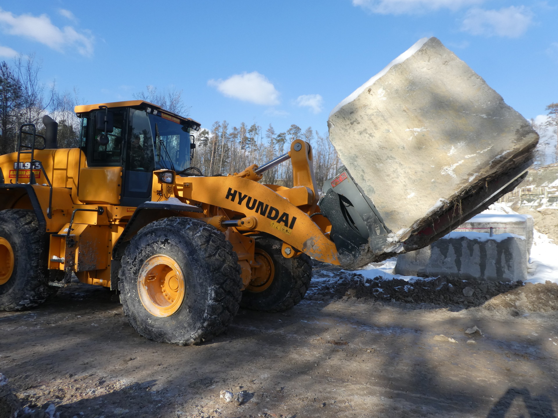 Speziell die vorgehängten Fassadenelemente werden aus großen Blöcken gesägt – zum Bewegen dieser Blöcke werden schwere Radlader mit Gabeln – sogenannte Blockhandler, eingesetzt. Schon lange pflegt das Bamberger Natursteinwerk eine enge Geschäftsbeziehung zum Hyundai-Vertragshändler Klarmann in Eltmann. Deshalb testete Geschäftsführer Martin Graser einen Hyundai-Radlader der 27-t-Klasse als Blockhandler über einen Zeitraum von zwei Wochen. Sein Fazit: „Das Gerät ist modern, sehr ergonomisch und wenn die von uns angeregten Anpassungen durchgeführt werden, könnte die Maschine auf unser Anforderungsprofil passen – wir bleiben mit Willibald Klarmann und seinem Team in engem Kontakt“.