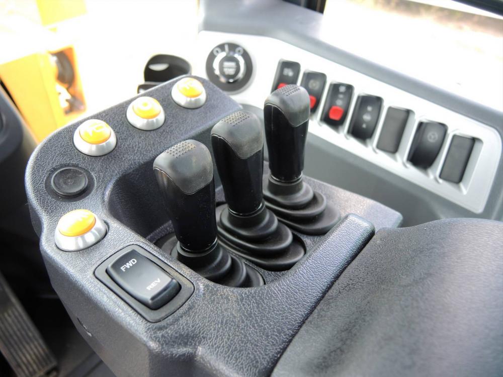 Bei der völlig neu konzipierten Kabine der HL-Reihe ist die große um 90 Grad schwenkbare Tür nun links (vorne) angeschlagen, was den Eintritt erleichtern soll. 80 mm Breiten- und 32 mm Längenzuwachs bietet die serienmäßig klimatisierte und besonders großflächig verglaste, vibrationsgedämpft montierte ROPS/FOPS-Kabine. Serienmäßig bedient der Fahrer das Hubgerüst mit einem Joystick. Minihebel (Fingertipps) sind Option, ebenso wie eine Joysticklenkung.