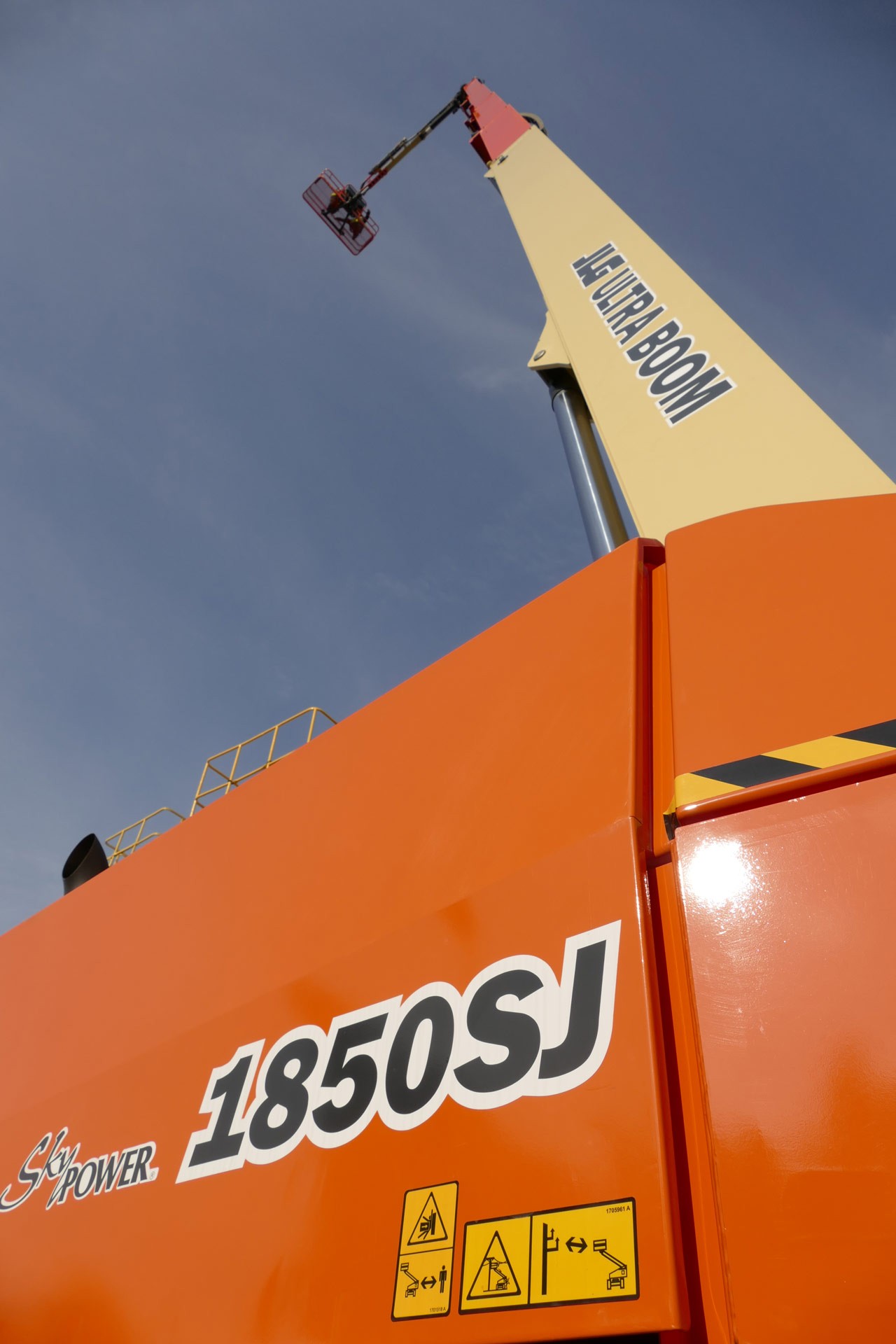 Die 1850SJ hat bei 58,50 m Arbeitshöhe eine horizontale Reichweite von 25 Metern. Der Ausleger kann um 360° gedreht werden. Die Arbeitsplattform trägt ein Gewicht von bis zu 450 kg (eingeschränkt) und kann bis zu 230 kg uneingeschränkt transportieren. Der Teleskoparm hat eine Länge von 6,10 m. Er kann vertikal um insgesamt 120° bewegt werden (75° nach oben und 45° nach unten). Die Plattform ist um 173° horizontal schwenkbar.