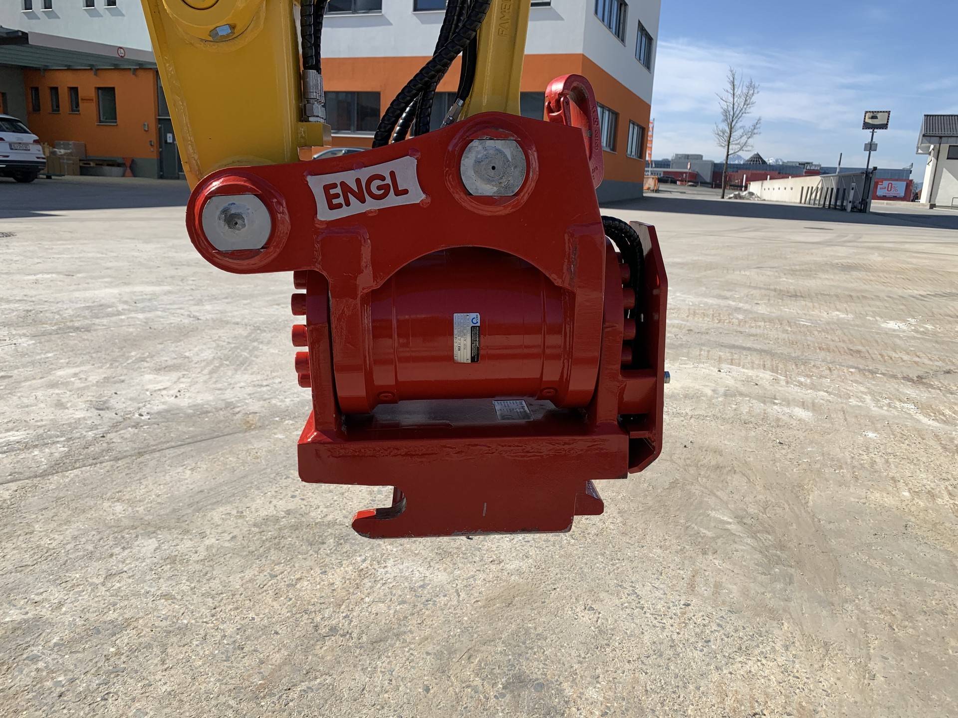 Gemeinsam mit der Firma Engl wurde eine Powertilt-Sonderlösung mit niedriger Bauhöhe erarbeitet. Bei Arbeiten mit dem Hydraulikhammer ermöglicht die Powertilt-Funktion das Kippen des Werkzeuges, sodass auch seitlich und präzise gestemmt werden kann ohne, dass der Bagger ständig umpositioniert werden muss.