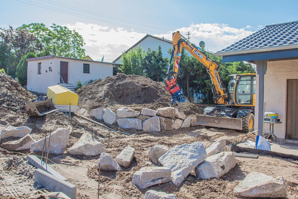 Natursteine werden das angehobene Grundstücksniveau abstützen.