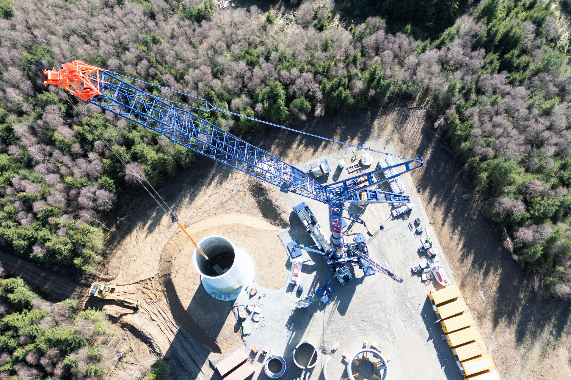 Bei seinem zweiten Einsatz errichtete der LTM 1750‑9.1 im bergischen Land eine Windkraftanlage.