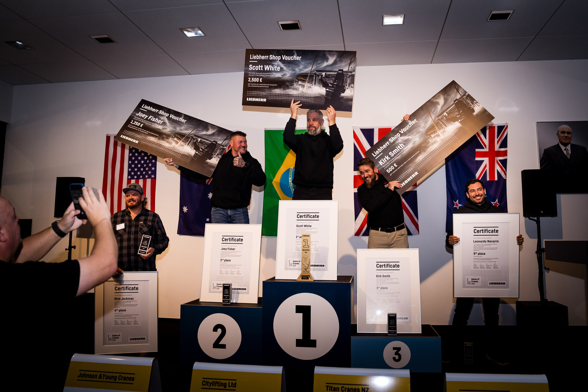 - Platz 3: Kirk Smith (Titan Cranes, Neuseeland) – 811 Punkte, Region: Afrika / Mittlerer Osten / Asien. „Es war ein sehr anspruchsvoller Wettbewerb – und eine tolle Erfahrung! Der Sportsgeist meiner Mitstreiter war unglaublich, trotzdem hatte ich einige schlaflose Nächte“, schmunzelt Smith.
