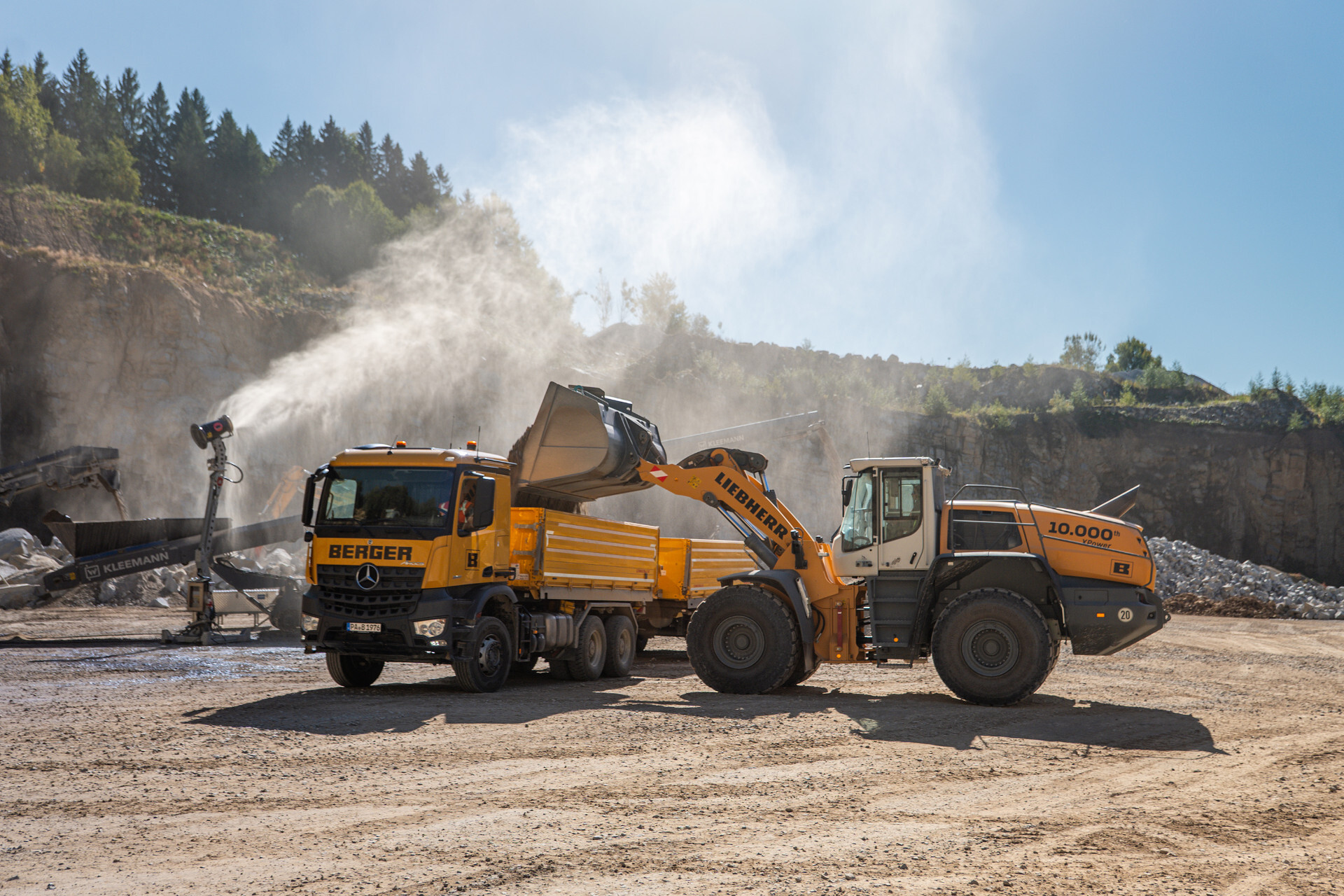 Kirchdorf im Wald (Deutschland), 6. November 2025 – Im Steinbruch Schlag verarbeitet die BERGER Rohstoffe GmbH jährlich ca. 200.000 Tonnen Bayerwald-Granit zu hochwertigen Splitten für Betone sowie Gemische für den Straßenbau. Seit Mai 2025 verstärkt ein besonderer Neuzugang den Maschinenpark: Als Jubiläumsmaschine lief der L 580 XPower-Radlader im Frühling 2025 im Liebherr-Werk Bischofshofen vom Produktionsband. „Wir freuen uns, dass wir den 10.000sten XPower-Radlader bei uns im Einsatz haben. Das zeigt, wie gut die Zusammenarbeit der drei Firmen BERGER, Liebherr und Beutlhauser ist“, berichtet Michael Gruber, technischer Betriebsleiter der BERGER Rohstoffe GmbH. Besonders geschätzt wird die vertrauensvolle Zusammenarbeit mit Liebherr und der Beutlhauser-Gruppe in Passau sowie deren hervorragende Serviceleistungen und kompetente Beratung. „Die Ersatzteil-Versorgung und der Service sind einfach top“, ergänzt Gruber.