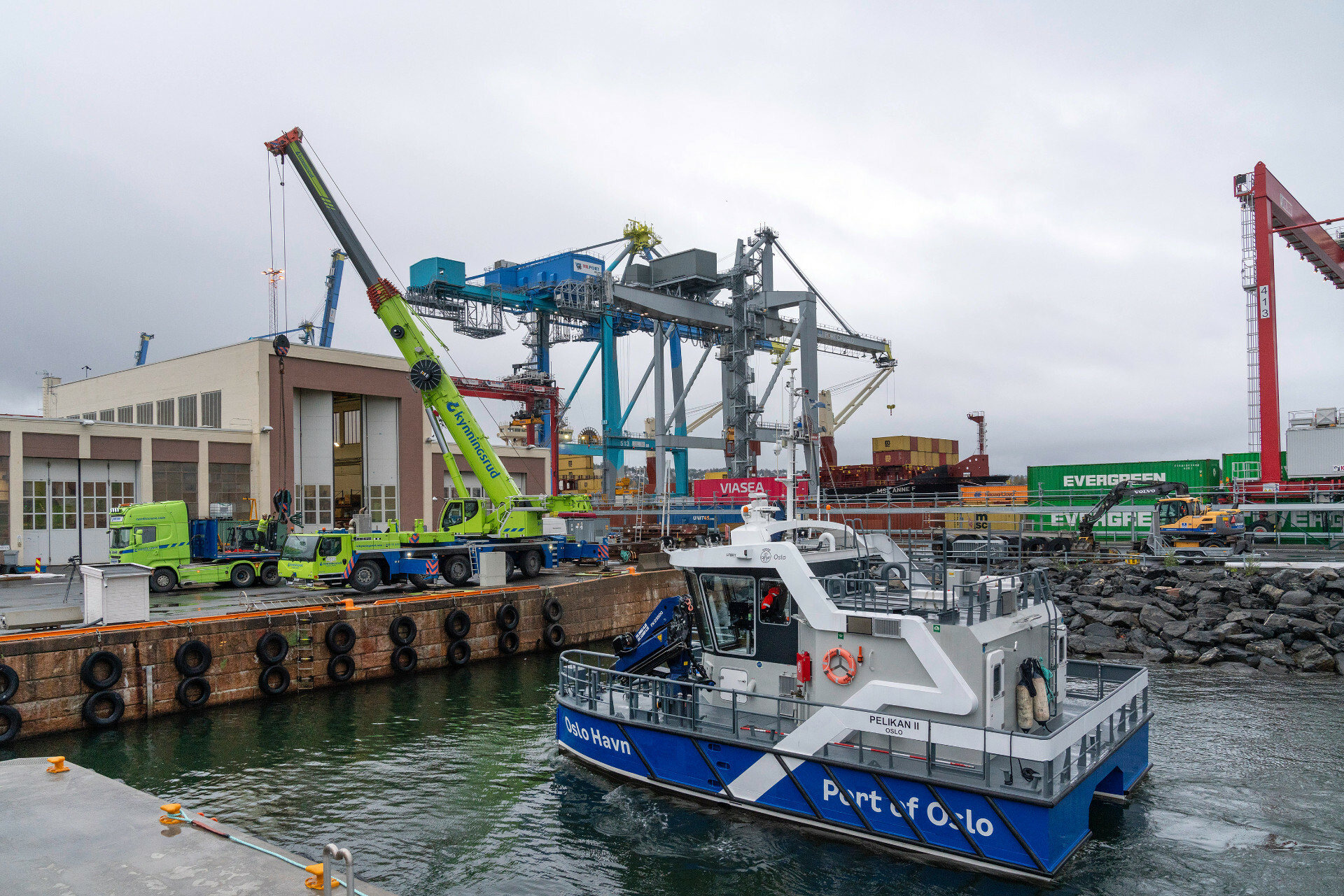 Ein Liebherr-Mobilkran LTM 1230-5.1 hat im Hafen von Oslo ein zwölf Meter langes Schiff an Land gehoben. Die „Pelikan II“ musste zur Jahresrevision in die Werfthalle. Seit 2021 sammelt das rein stromgetriebene Schiff Müll und Treibgut im weitläufigen Hafengebiet der norwegischen Hauptstadt. Dafür ist es mit zwei Deckskranen und einem Fangkorb ausgestattet. Die Arbeit des schwimmenden Müllsammlers soll die Schifffahrtswege frei von Treibgut halten und verhindern, dass Plastikmüll aus dem Hafen über den Oslofjord ins Meer gelangt.